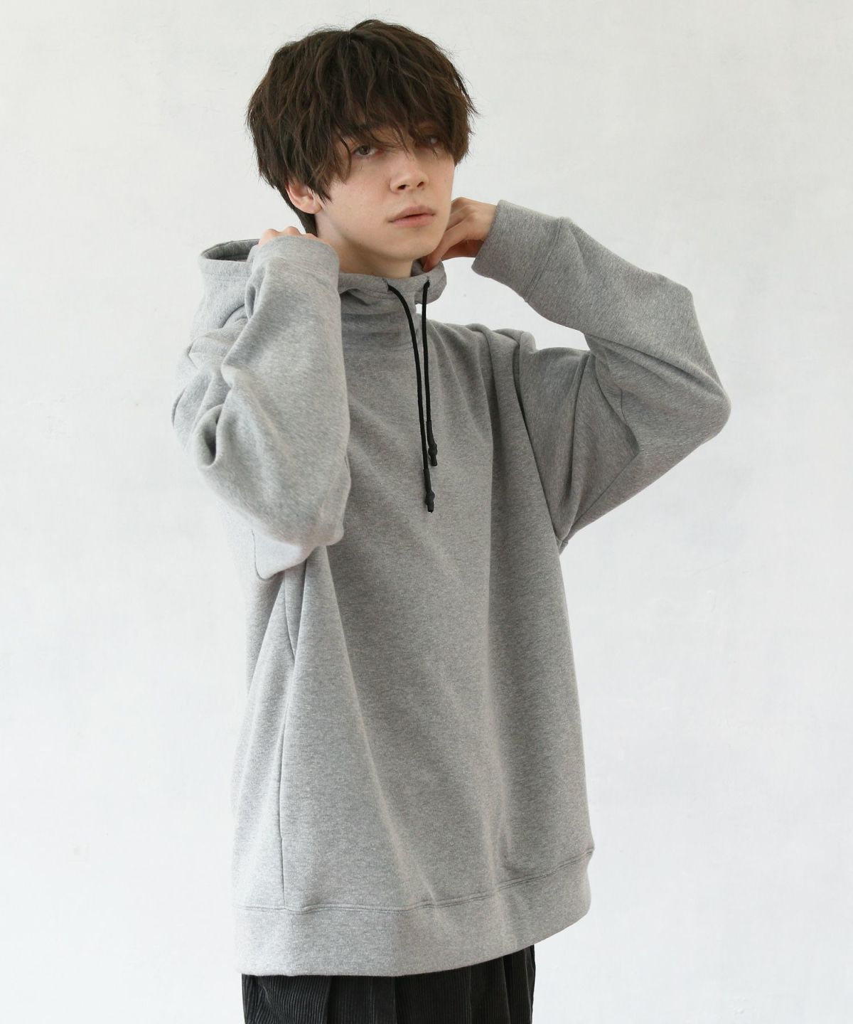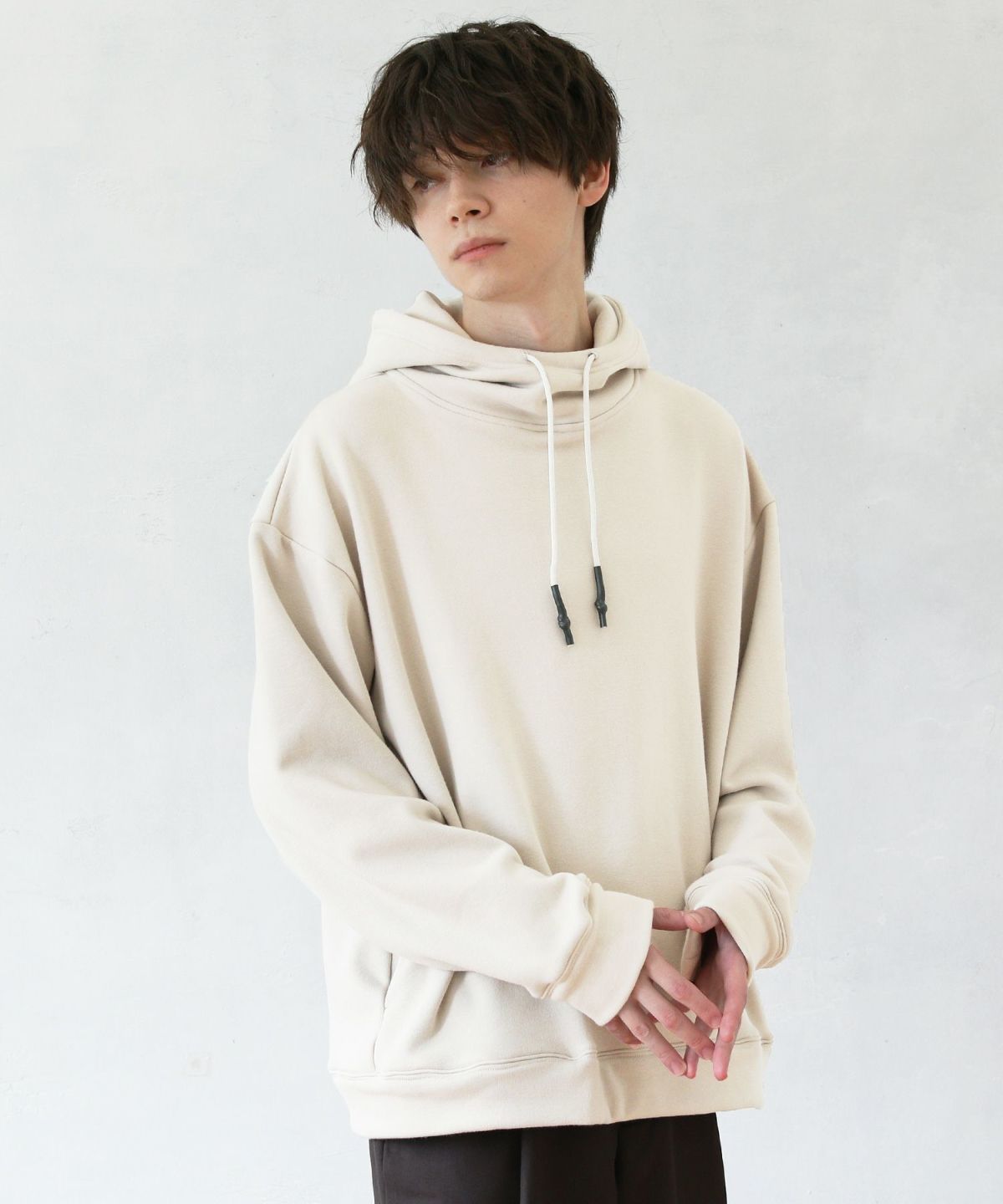 コットンスウェットボリュームネックプルオーバーパーカー