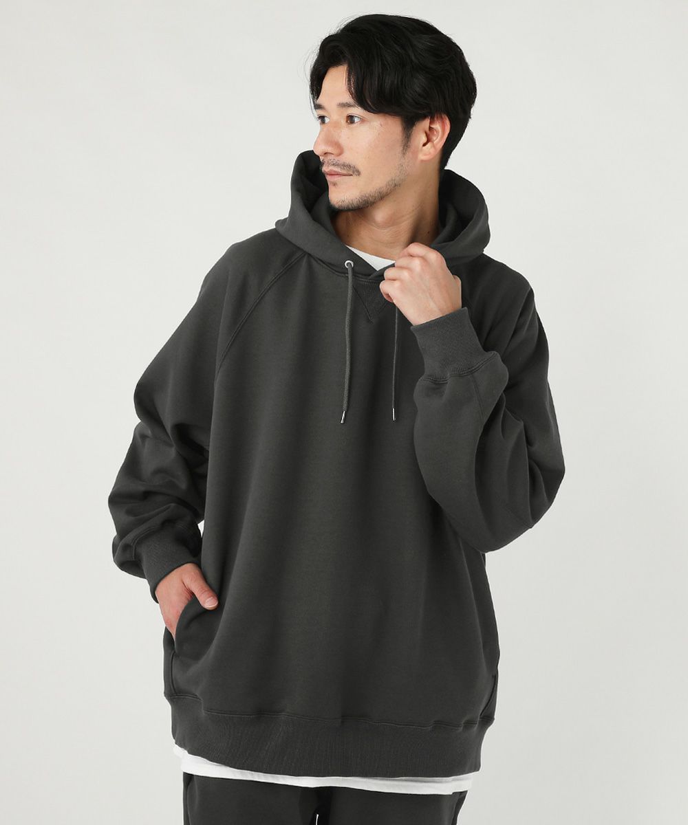 日本製16オンスハードコンパクトヘビー裏毛ラグランガゼットプルパーカー