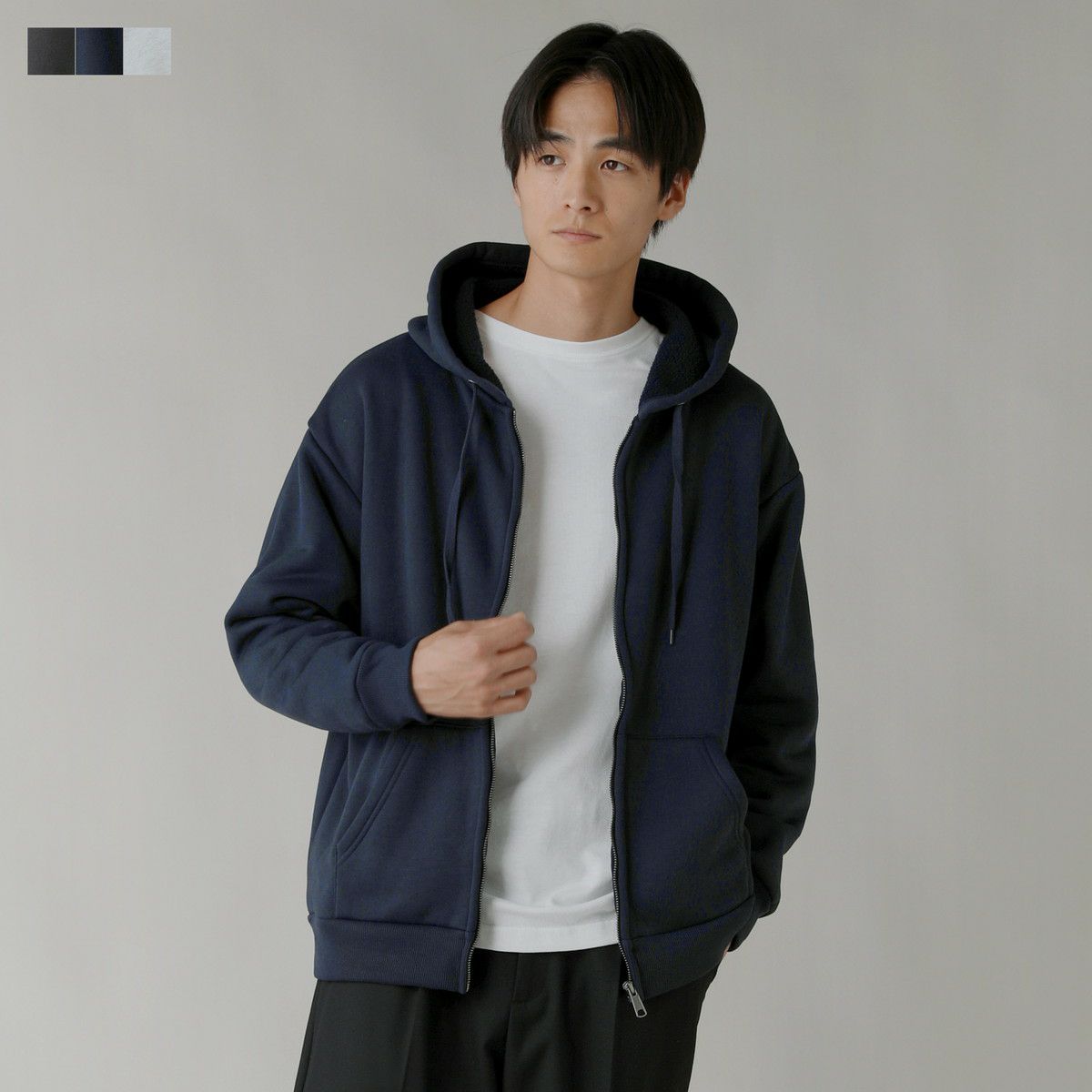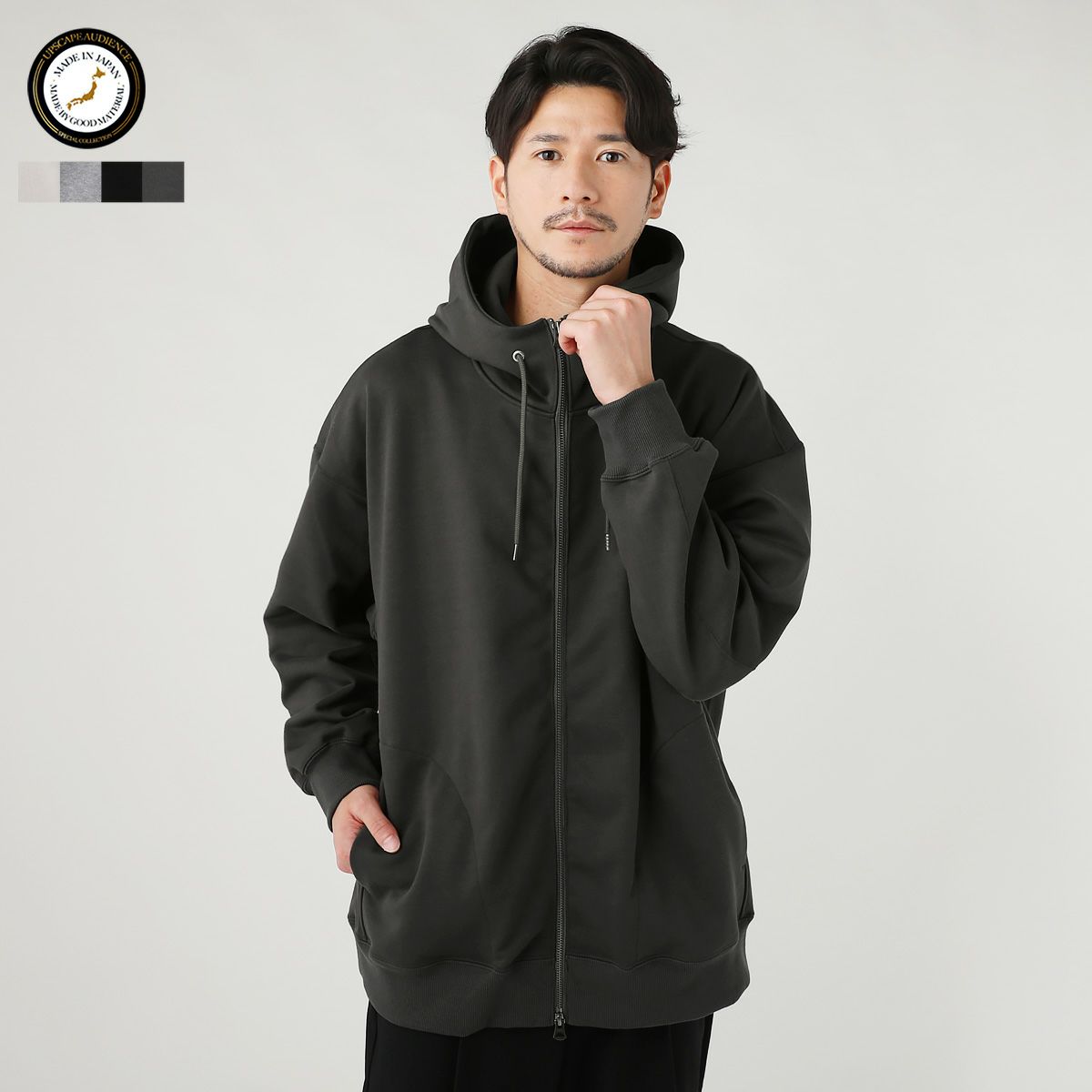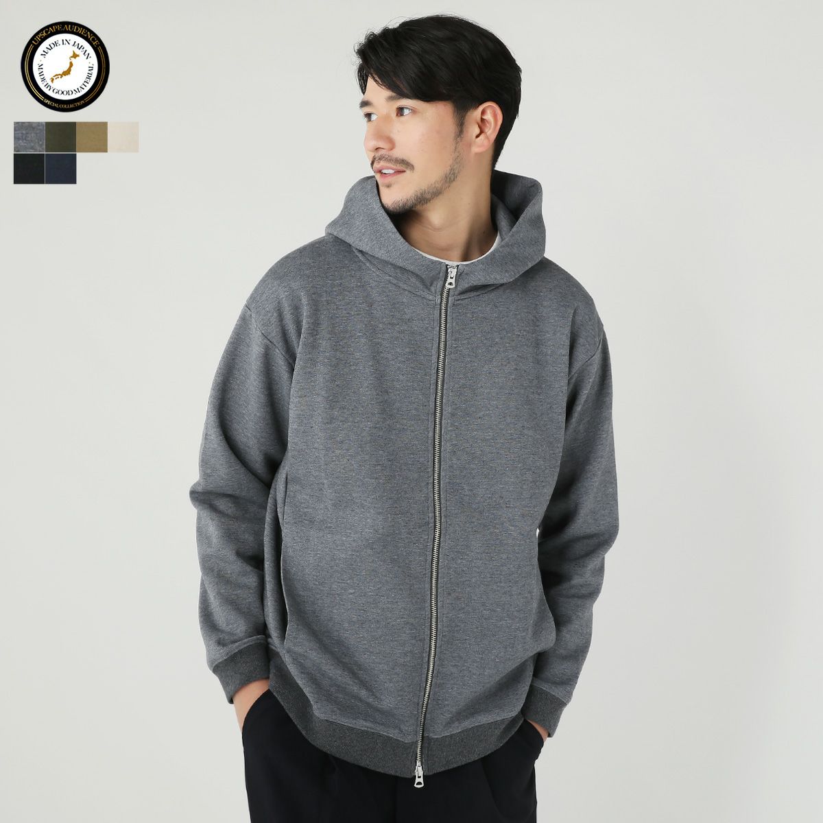 メンズ パーカー 綿 ポリエステル 日本製 ライトダンボール フード ZIP パーカー