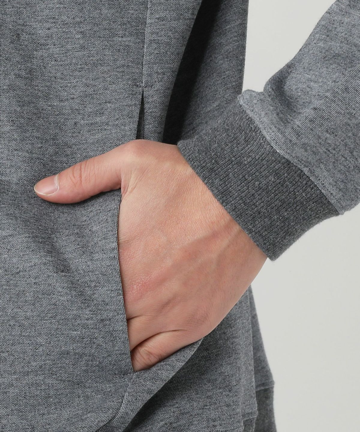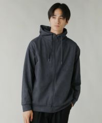 ウォーム加工 裏起毛ハイネック杢柄ZIPパーカー
