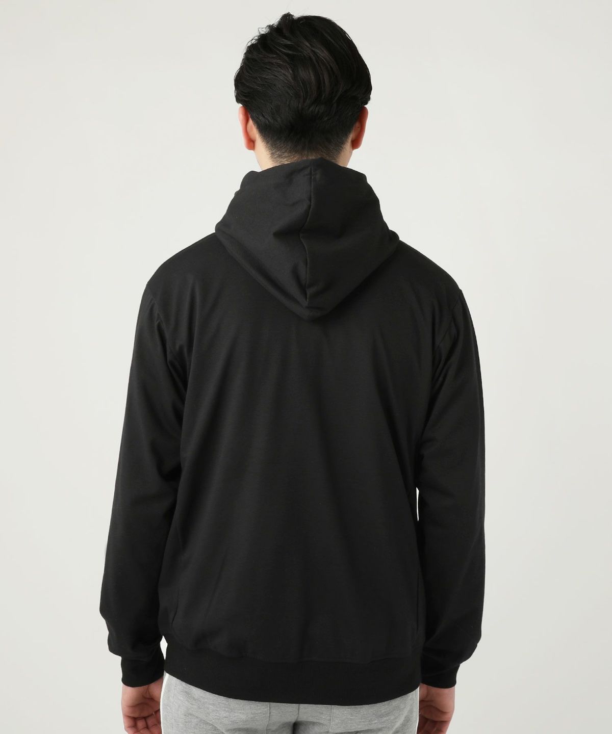 Wシルケット天竺8分袖フーディージャケットパーカー