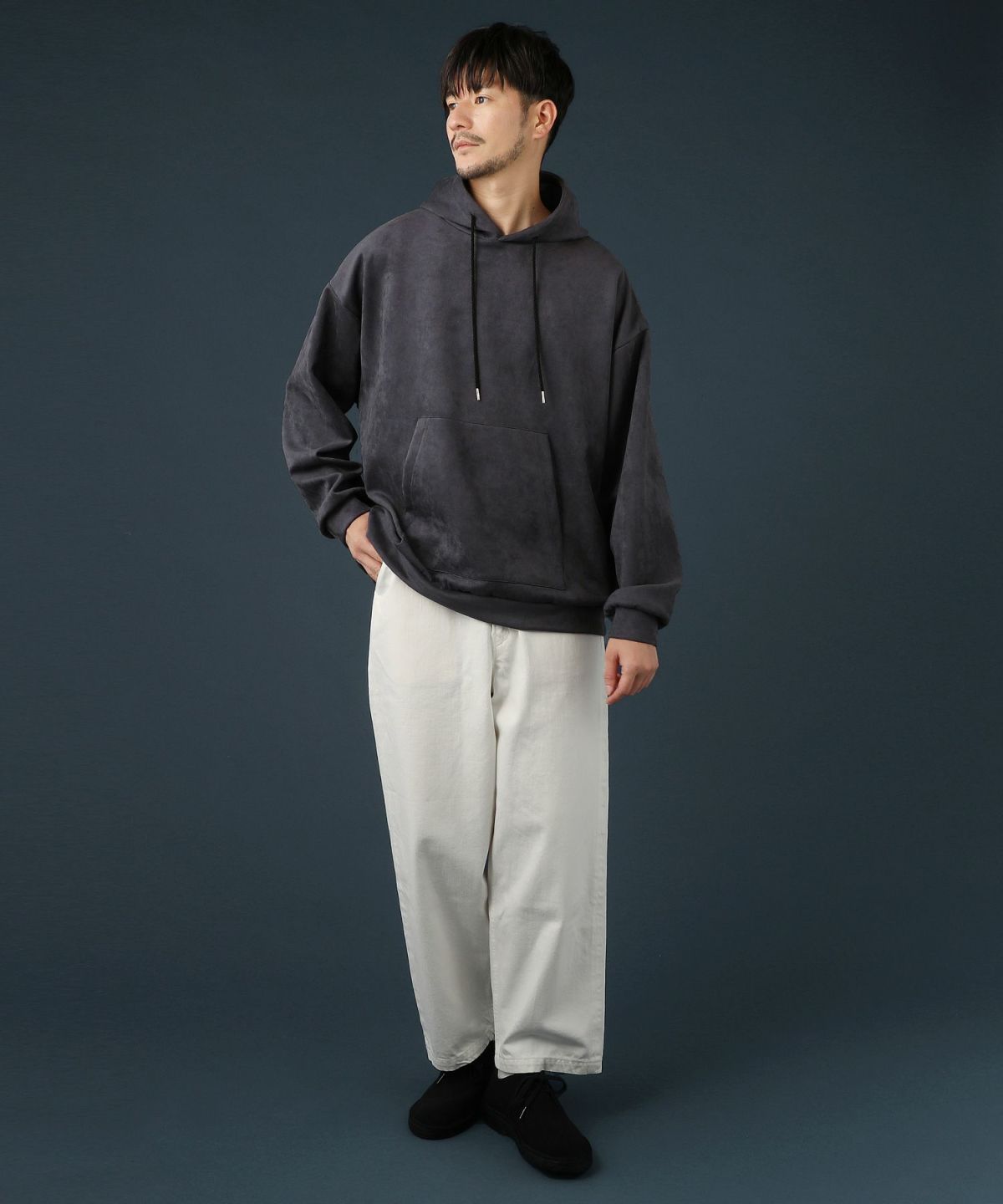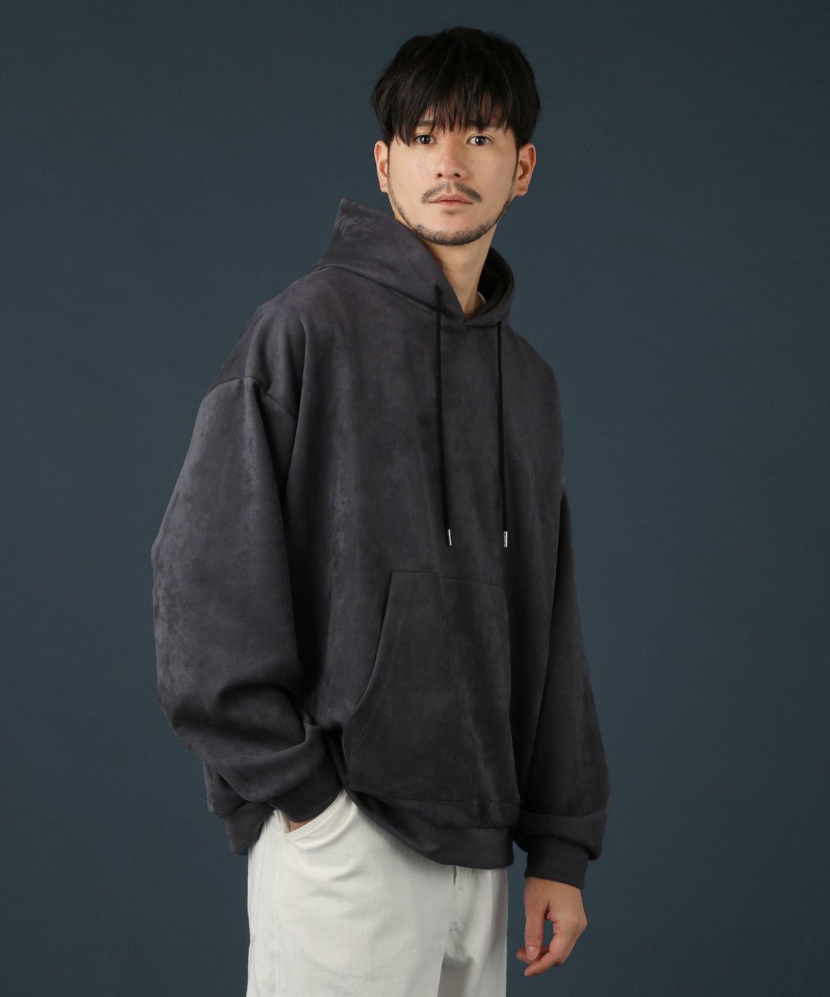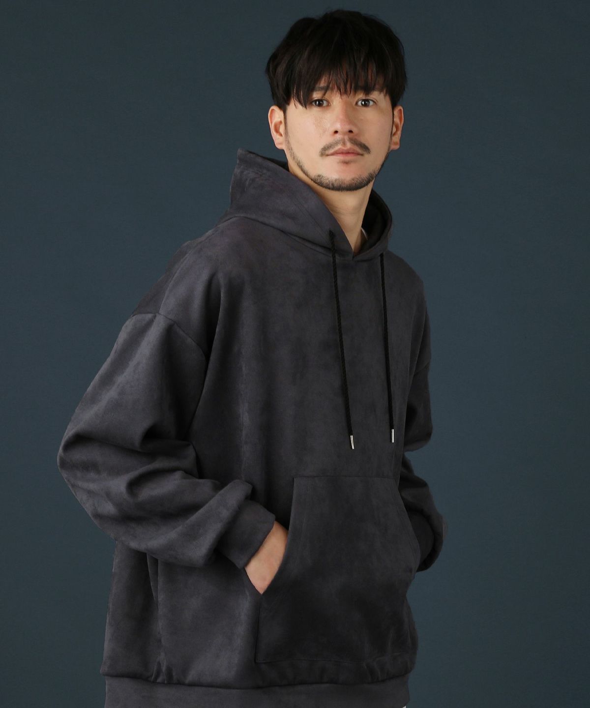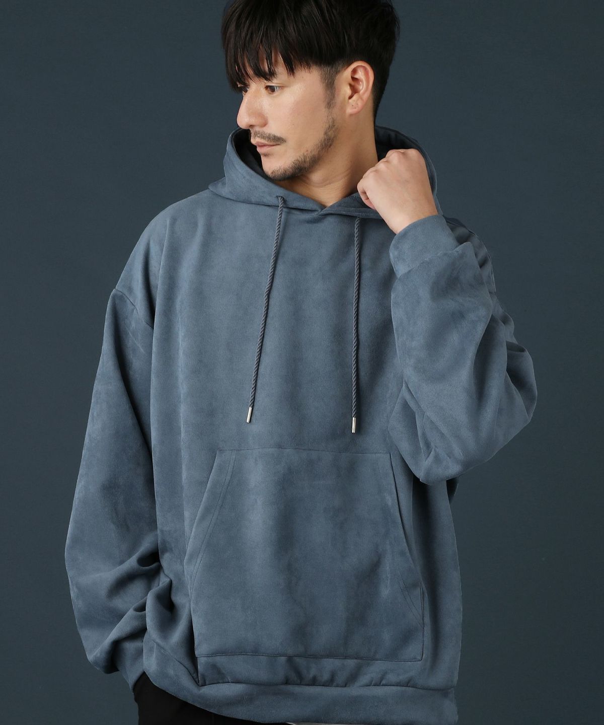 ストレッチフェイクスウェードプルパーカー
