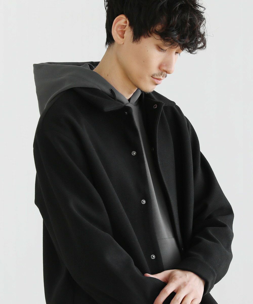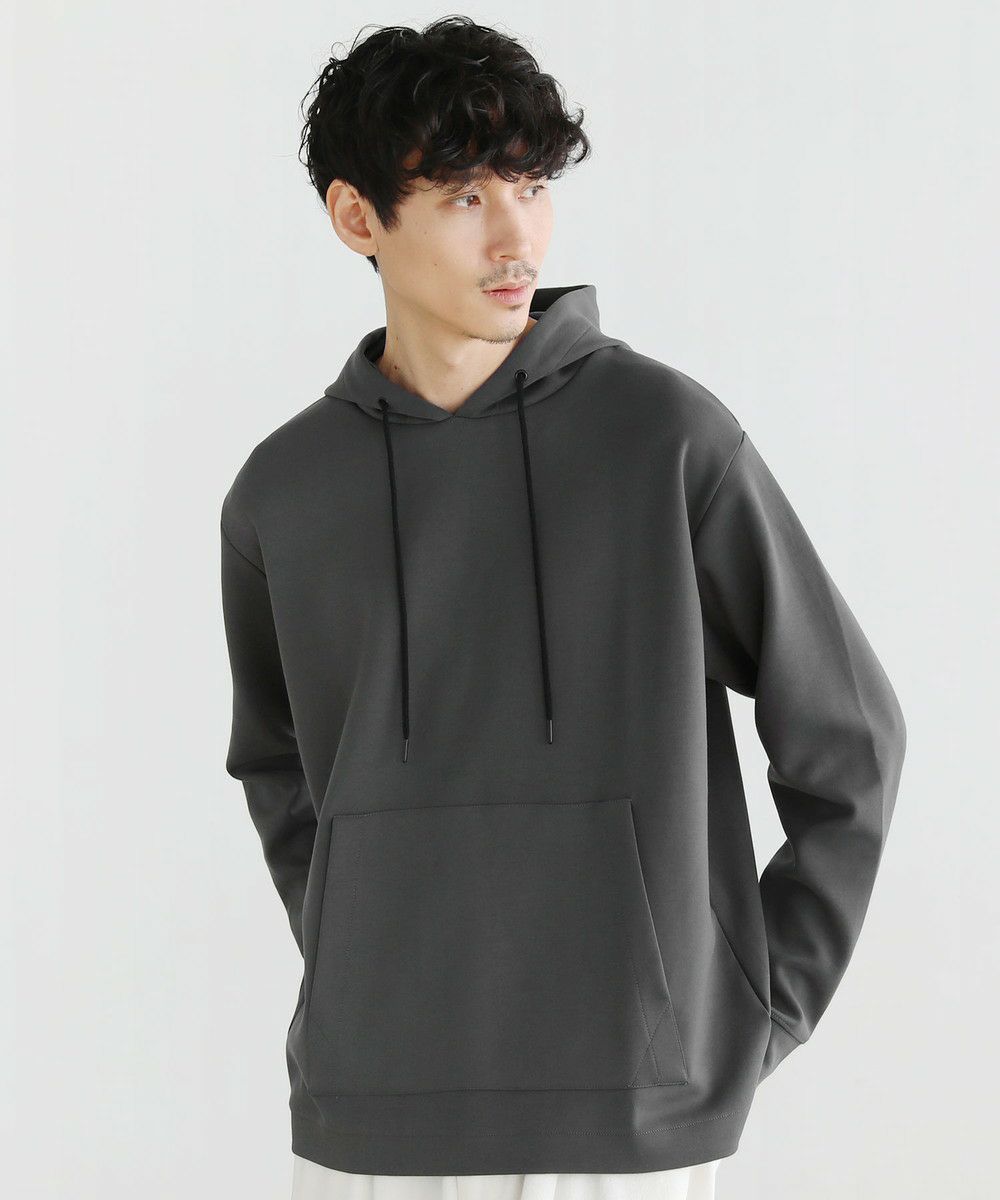 スタンダードなボックスシルエットですが、やや肩のラインを落としたデザインと広めに設定した身幅が、窮屈感なくゆとりのある着心地を実現。しっかりとした生地感のため、着用時もフードの立ち上がりが美しく、コーディネートのポイントになります。