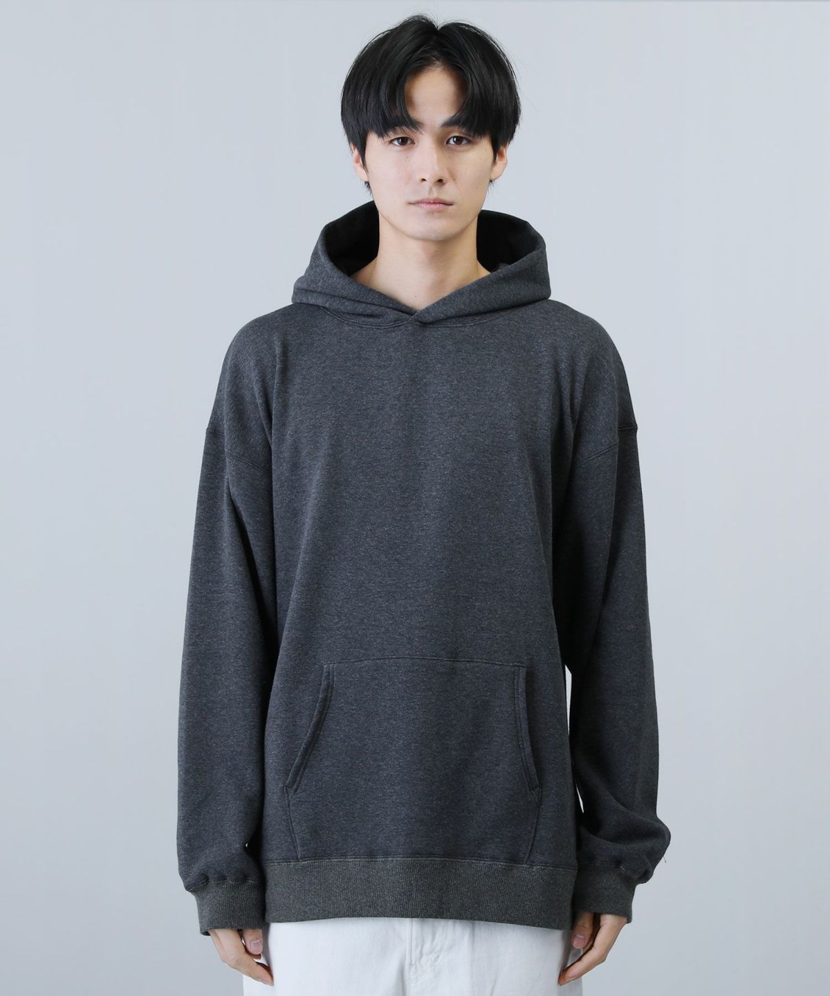 ボンバーヒートと呼ばれる裏起毛生地を用いた日本製プルパーカーです。