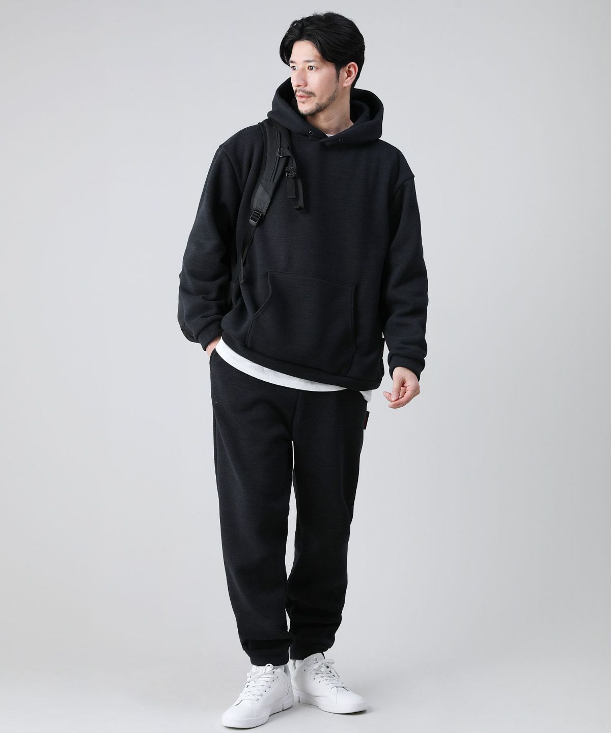 と合わせれば簡単にセットアップコーデが完成。タウンユースからご自宅でのリラックスタイムまで幅広いシーンで活躍する一着です。