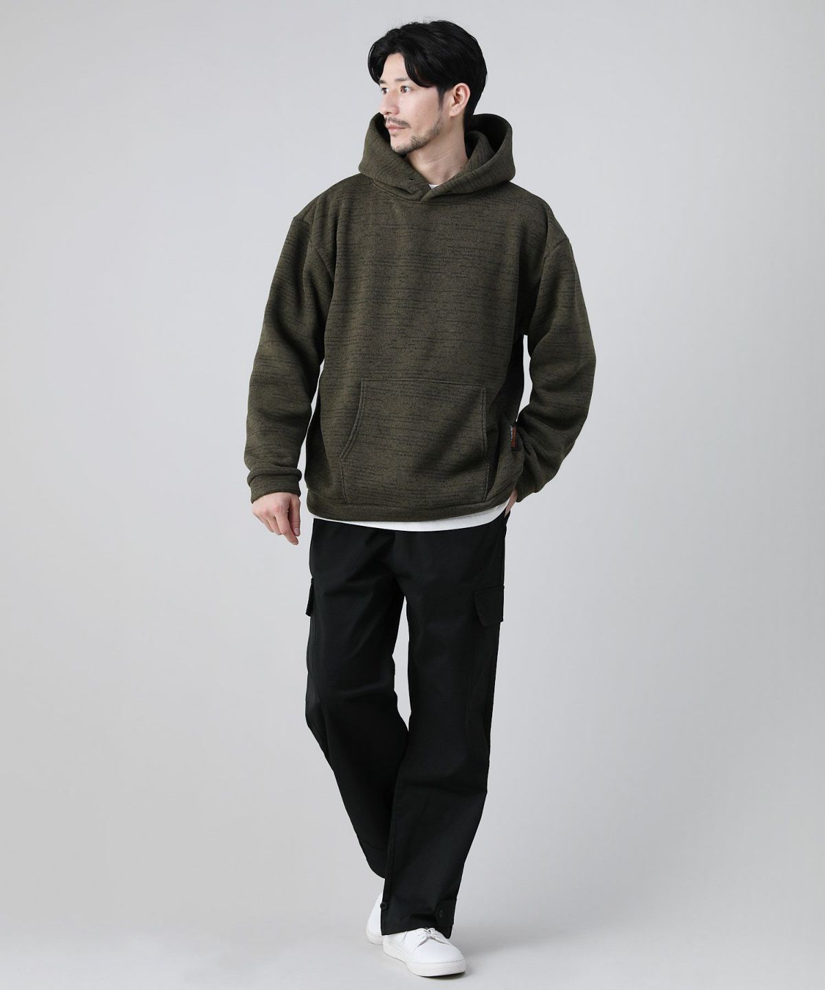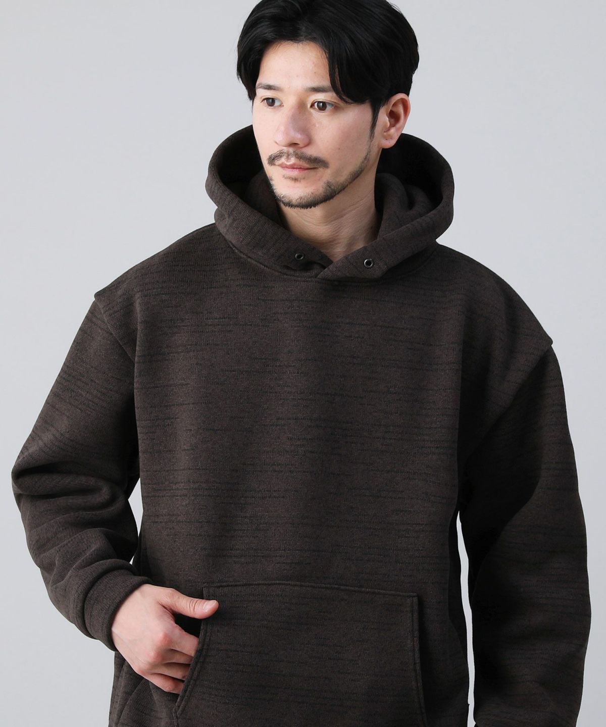 素肌に触れる裏面に『POLARTEC(ポーラテック)』を使用した、暖かいニットプルパーカー。
