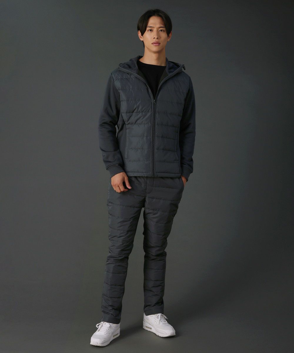 同素材でパンツもご用意しております。お洒落に穿けるあったかダウンパンツ。パーカー同様にフリースとボア仕様の裏地で温もりを逃がしません。フィット感をお選びいただけるスキニー・レギュラーの2つのシルエットで展開しております。コーディネートに迷ったときは、上下揃えるだけで簡単にお洒落なコーデが完成するセットアップスタイルがおすすめです。 >セットアップパンツはこちら