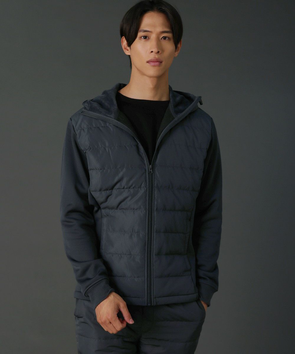 室内でもかっこよく着続けられる、スリムシルエットの『あったかパーカー』です。100%ダウンフェザーの詰め物によって発揮される確かな保温性とモコモコ感を抑えたスタイリッシュな見た目で、寒い季節のお洒落着として活躍するパーカーを完成させました。動きやすいラクな着心地で、車の運転時の羽織りにも最適な一着です。