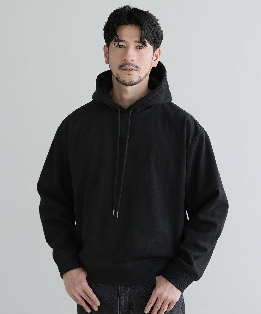 あったかもちもち裏起毛フェイクスウェードプルオーバーパーカー