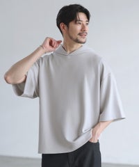 身幅や腕ぐりにゆとりを持たせて完成させたリラクシーシルエット。動くたびに揺れ動くとろみ感のあるポンチ生地の効果で、ゆったりとしたシルエットでありながらもキレイめな印象を演出してくれます。袖口や裾にリブがなく、Tシャツのような感覚でラフに着られるデザインを採用。大きめのフードはコーディネートのアクセントになります。さっと被るだけで着られるのに、簡単にただのTシャツコーデよりもお洒落な雰囲気に仕上げることができる一着です。