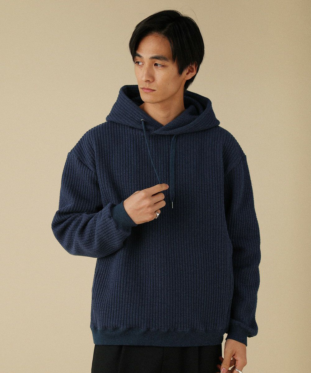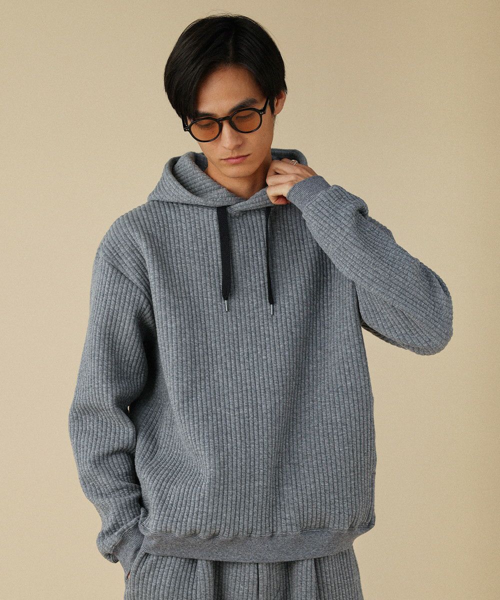 ボックスシルエットとドロップショルダーがリラックス感とこなれた雰囲気を生み出しつつ、程よい着丈なのでだらしなく見えないデザインとなっております。裾と袖口にはリブを配しており、フィット感と切り替えデザインがさりげないポイントに。フード部分は生地を二重にして厚みを出すことで、キレイな形での立ち上がりをキープしてくれます。