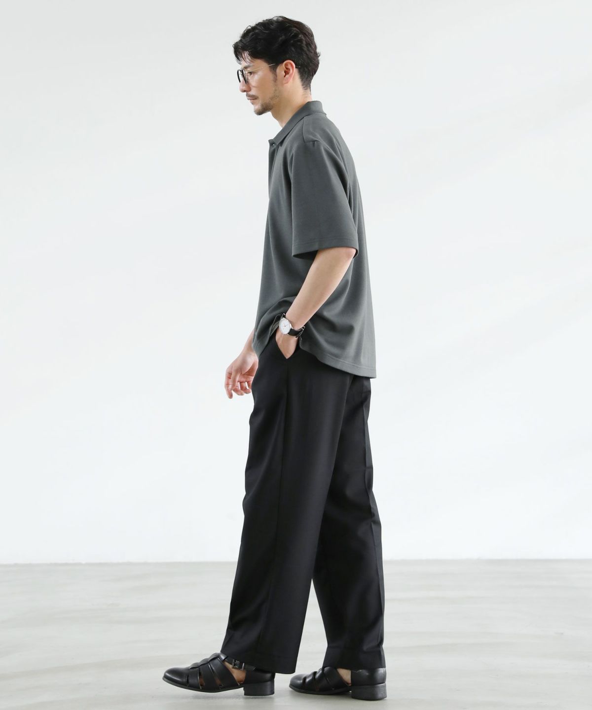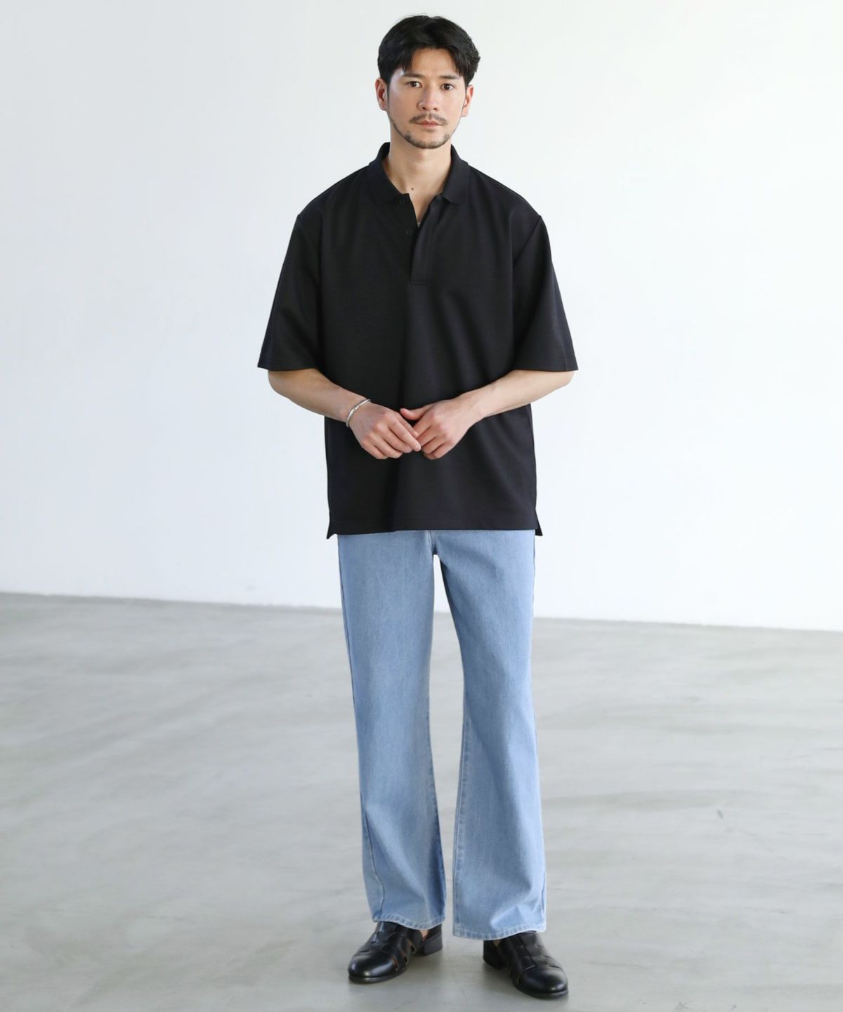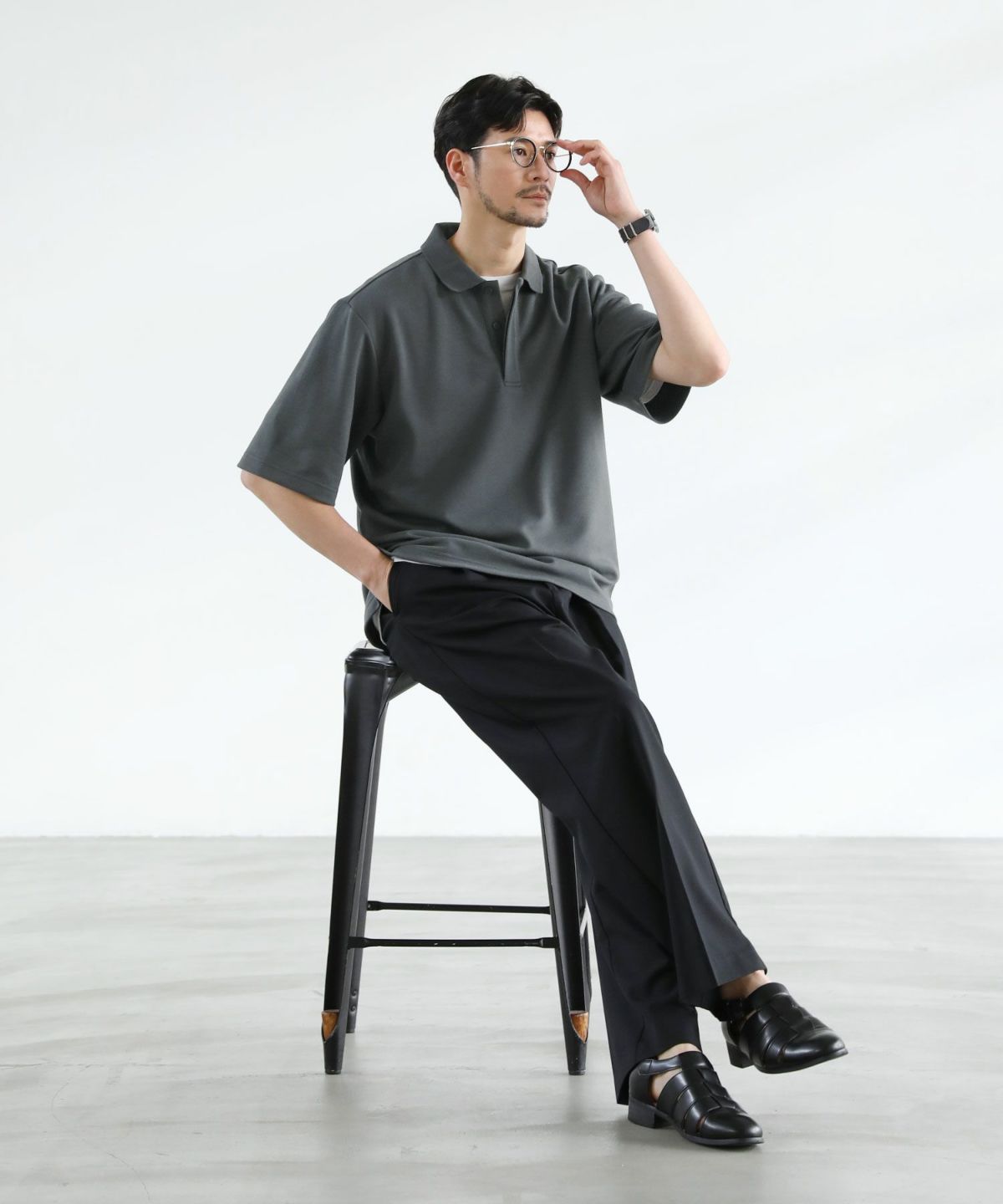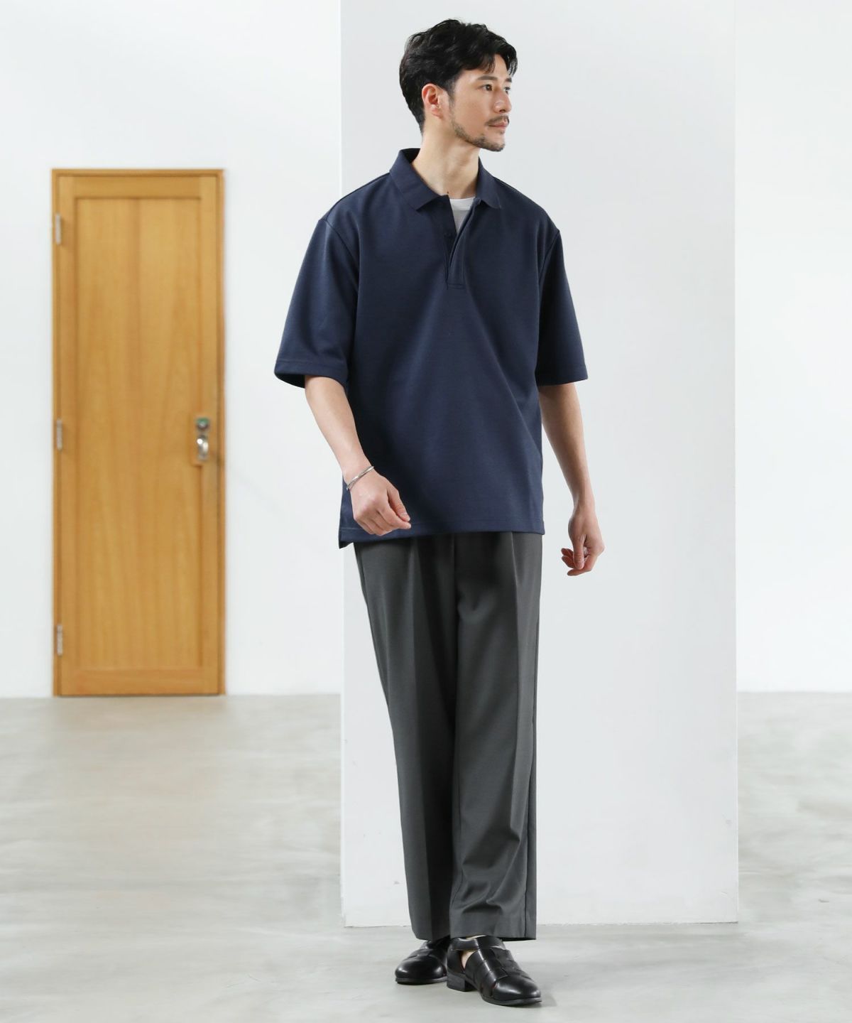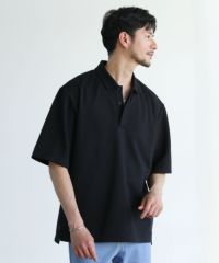 広い腕ぐり、身体のラインを拾わないワイドな身幅でリラックス感のある着心地です。ネック部分はスッキリとしたデザインの比翼仕立てでクリーンな印象に。ボタンの開け閉め具合でキレイめな着こなしからインナーで遊べるカジュアルな着こなしまで対応する一着です。