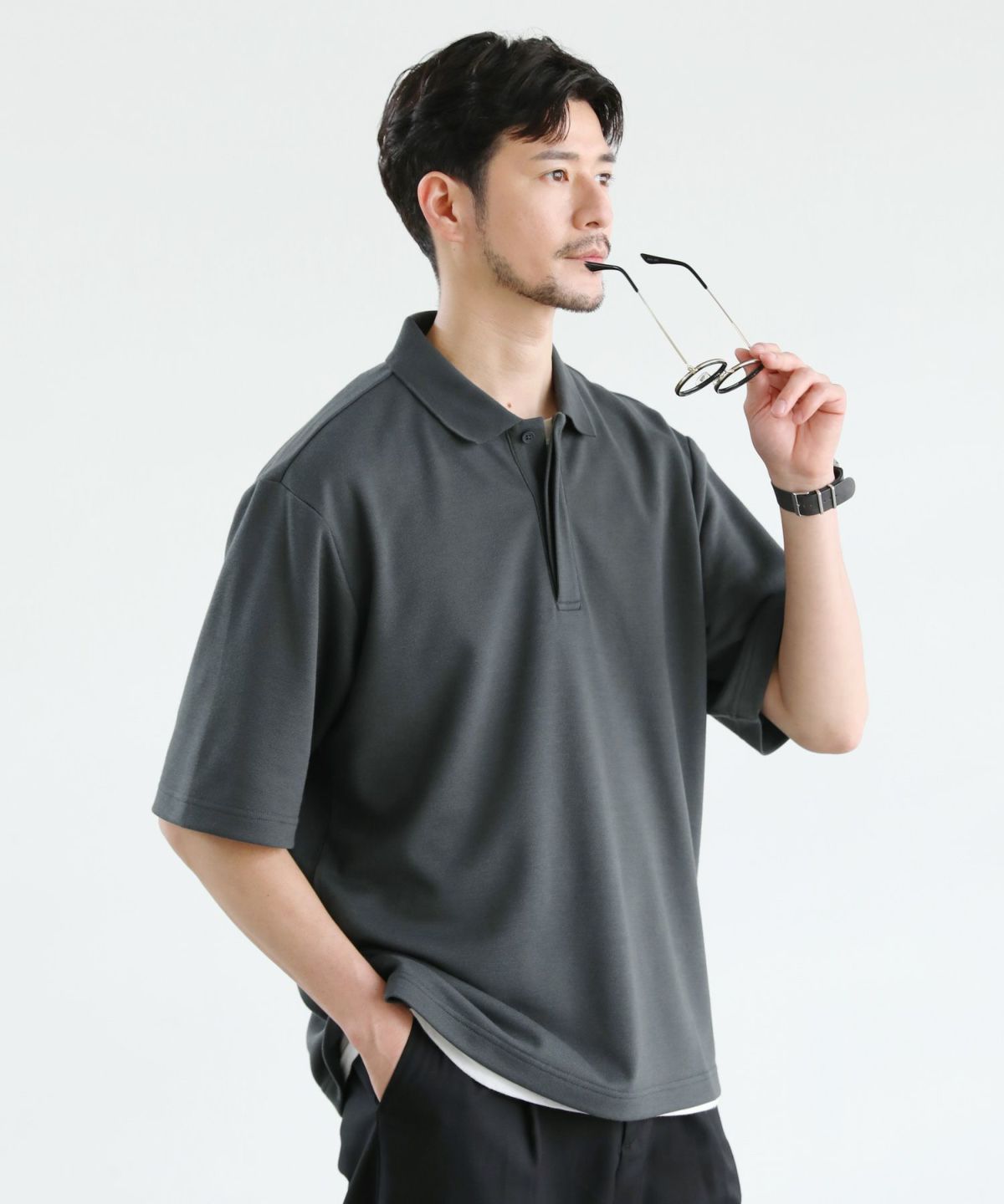 ゆったりとしたオーバーサイズのシルエットでお洒落な装いが楽しめる、大人向けのビッグポロシャツです。無駄がなく洗練されたデザインが、上品な印象を与えます。抗菌防臭機能と接触冷感機能を併せ持った特殊な生地を用いて、汗ばむ季節の中でも涼しく清潔にご着用いただけるように仕上げられたアイテムです。