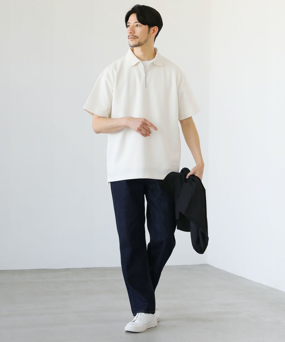 コーディネートに抜け感をプラスしてくれるハーフジッププルオーバー。ジップの開け具合でインナーとのレイヤードも楽しむことができ、着こなしの幅を広げてくれる一着です。素材には抗菌防臭機能と接触冷感機能を併せ持った特殊な生地を用いているので、汗ばむ季節の中でも涼しく清潔にご着用いただけます。サイズにゆとりを持たせており窮屈感のないラクな着心地で、ゆったりとしたルーズシルエットが簡単に今っぽい装いに仕上げてくれます。無駄がなく洗練されたデザインで、キレイめにもカジュアルにも合わせやすいアイテムとなっています。