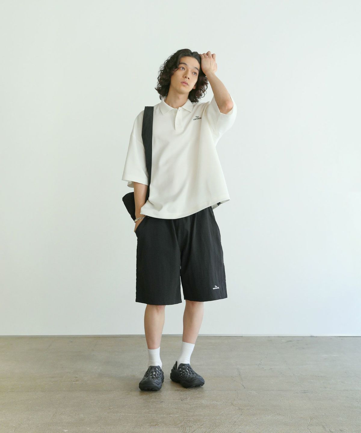 【3点セットアップ】刺繍オーバーサイズ鹿の子ポンチポロシャツ&ナイロンショーツ&ソックス