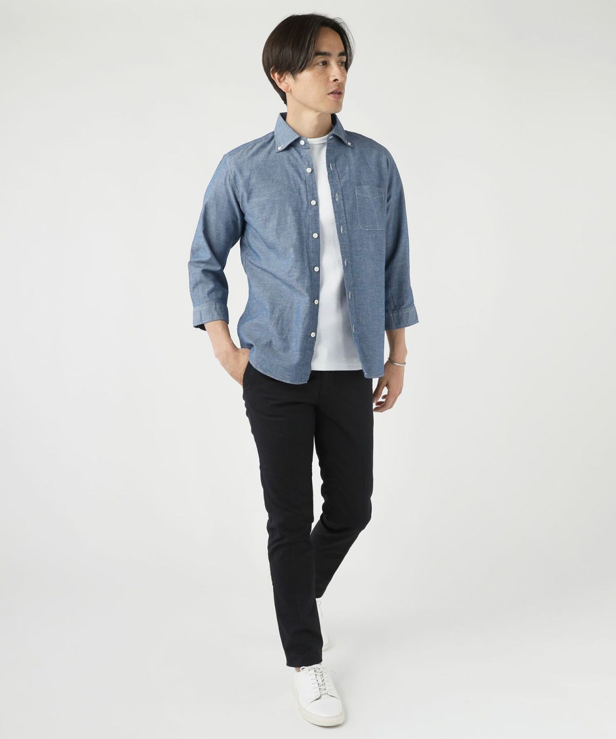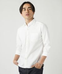 コットンスラブ9分袖ボタンダウンシャツ