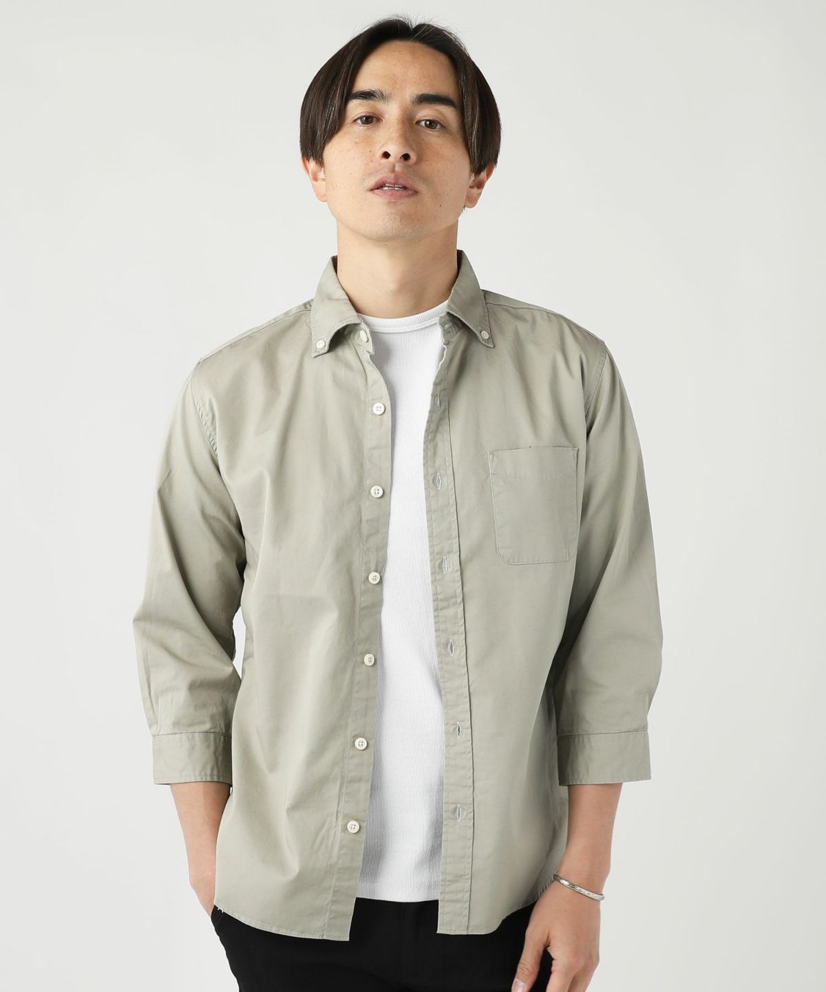 日本製ワイドスプレットボタンダウン七分袖シャツ