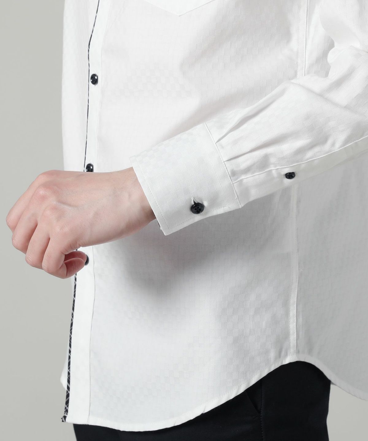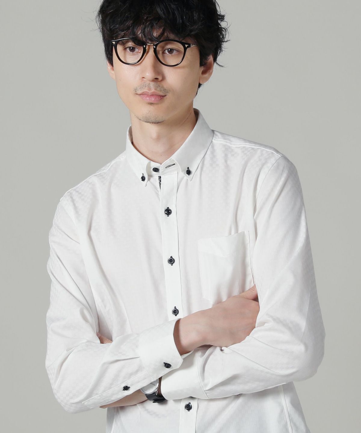 日本製接触冷感ランダムコードレギュラーカラー長袖シャツ