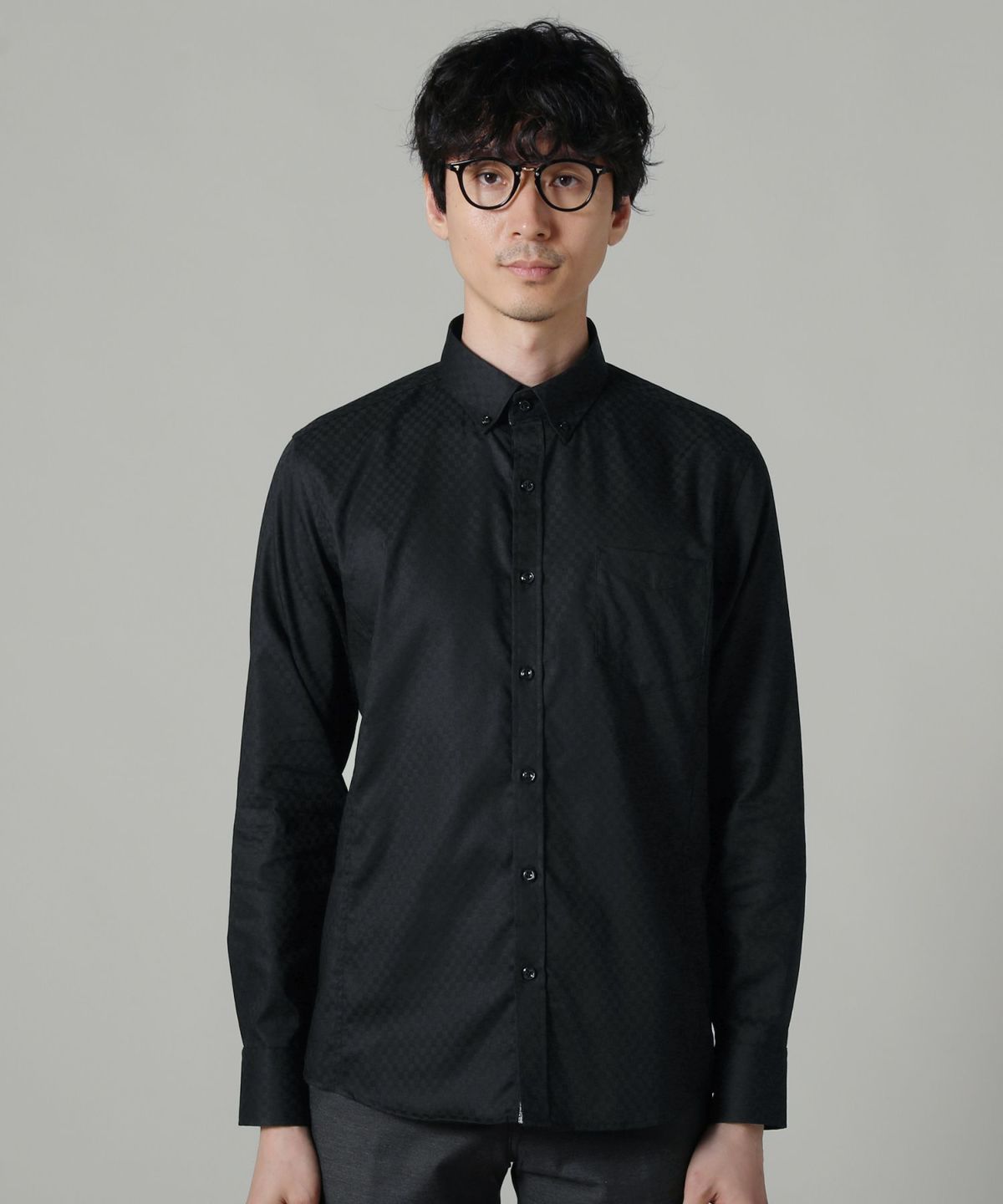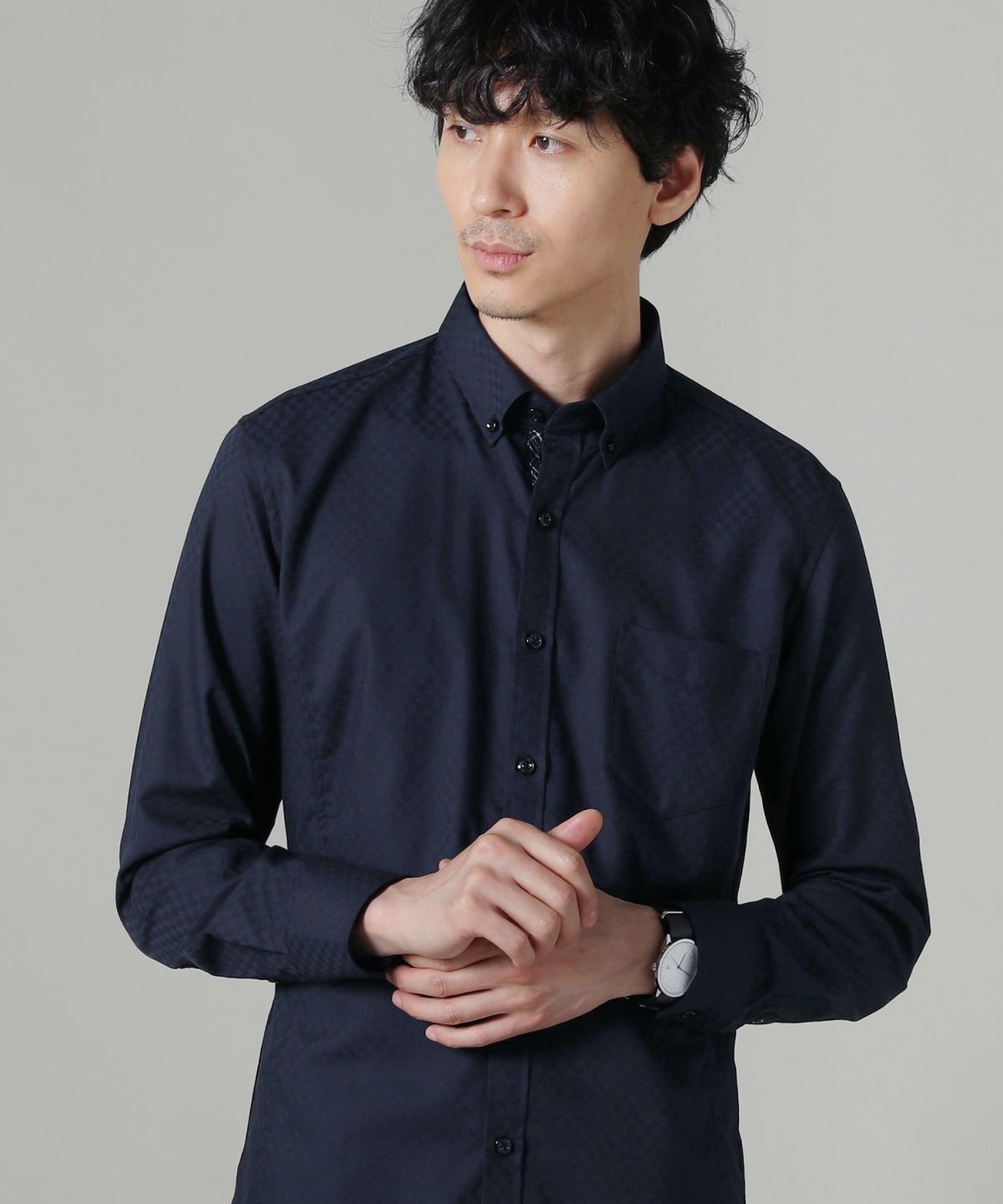 シャドーチェック形態安定長袖ボタンダウンシャツ