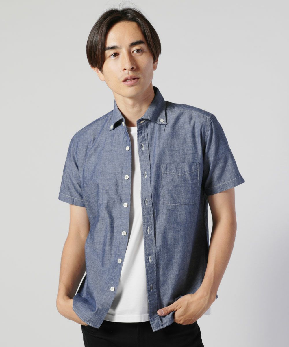 日本製/オックスフォード/ブロード/綿麻/ダンガリー ワイドスプレッド ボタンダウン半袖シャツ メンズ
