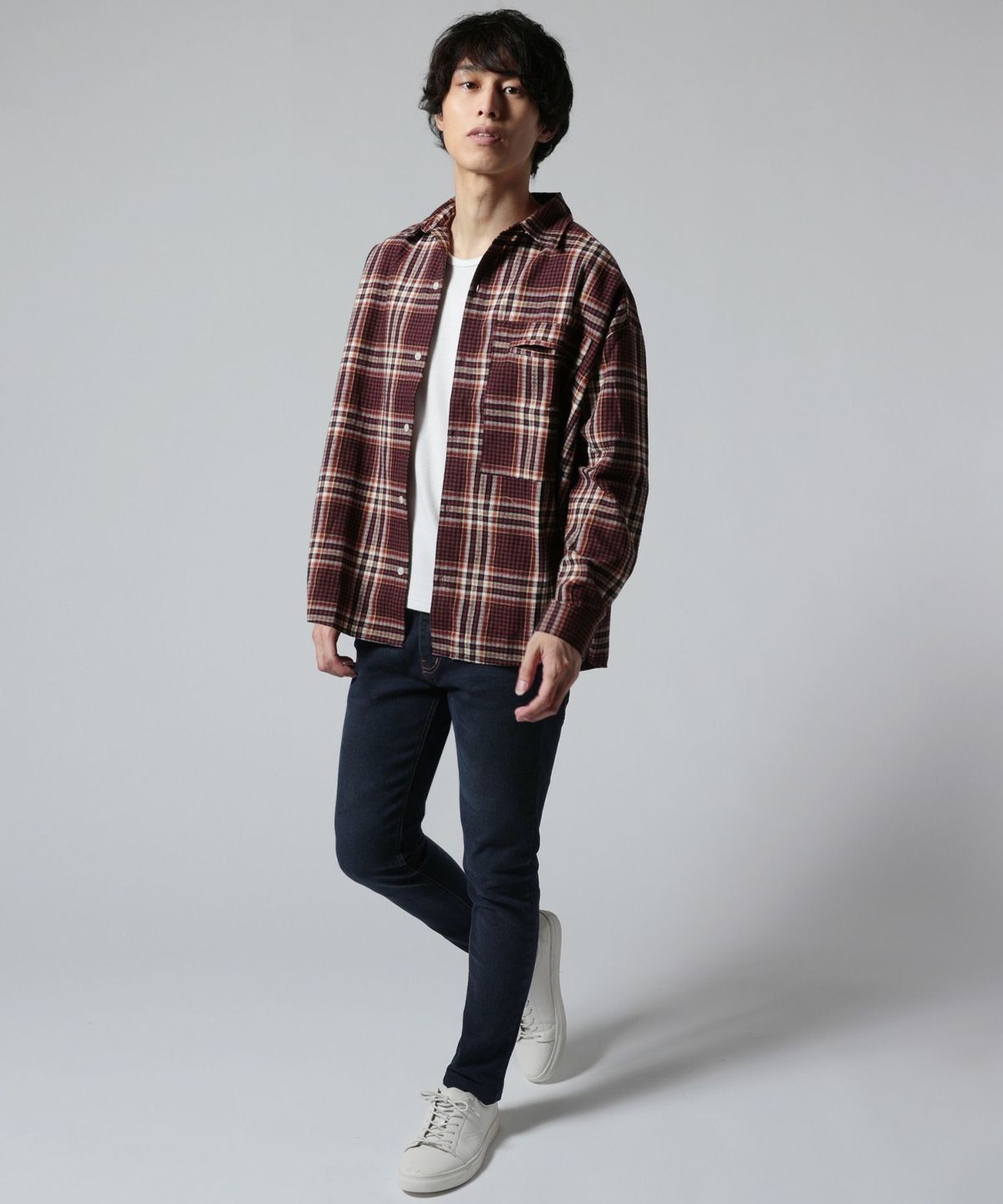 豊富なカラー展開が魅力的で、チェック柄の違いで大きく印象が変わります。着こなしも多彩で、Tシャツやタンクトップの上にさっと羽織ったり、肌寒い日のインナーとしても活用できます。また、ボトムには細いスキニーを合わせると、ダボつきを抑えたキレイめのすっきりコーデが完成します。