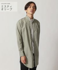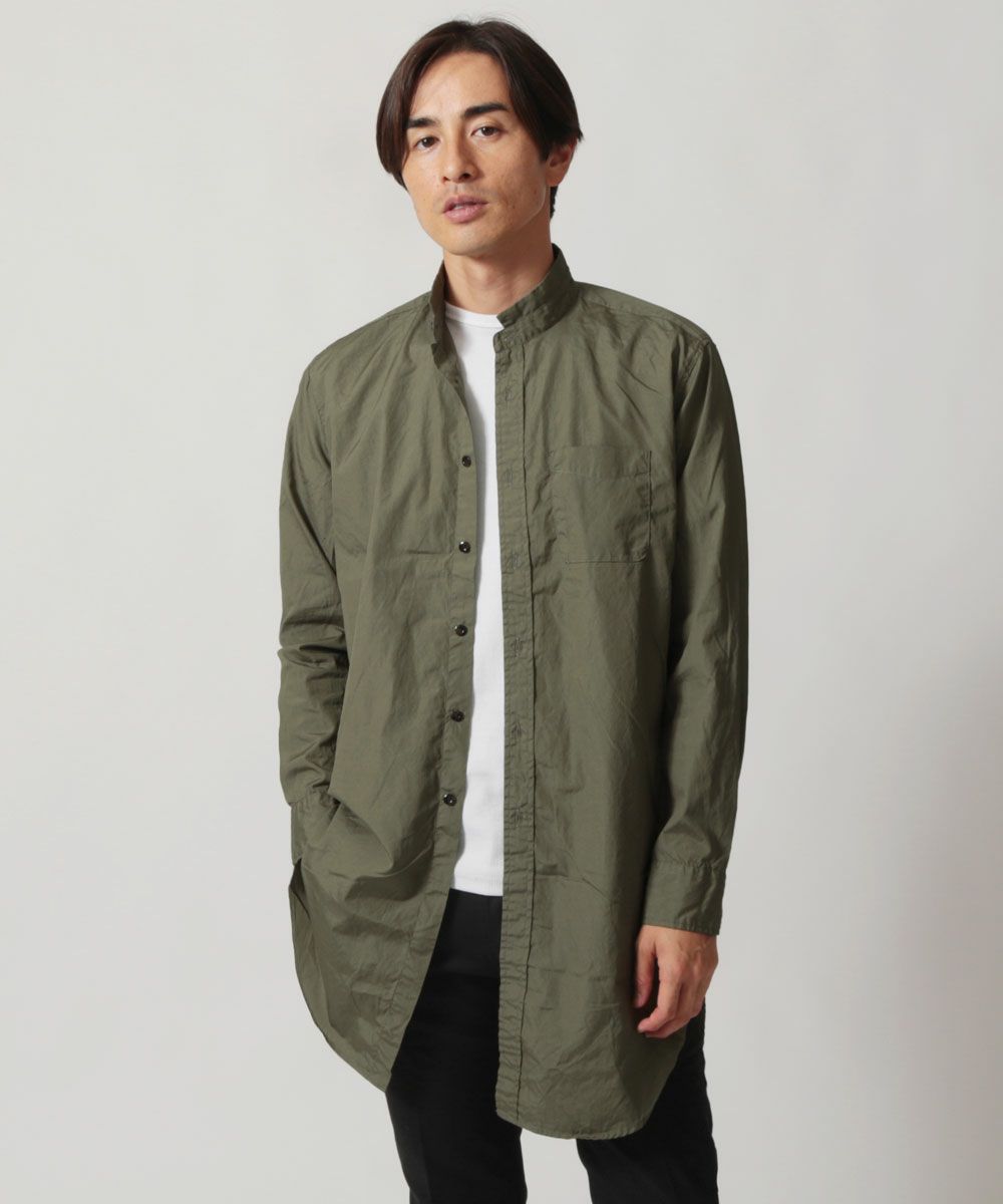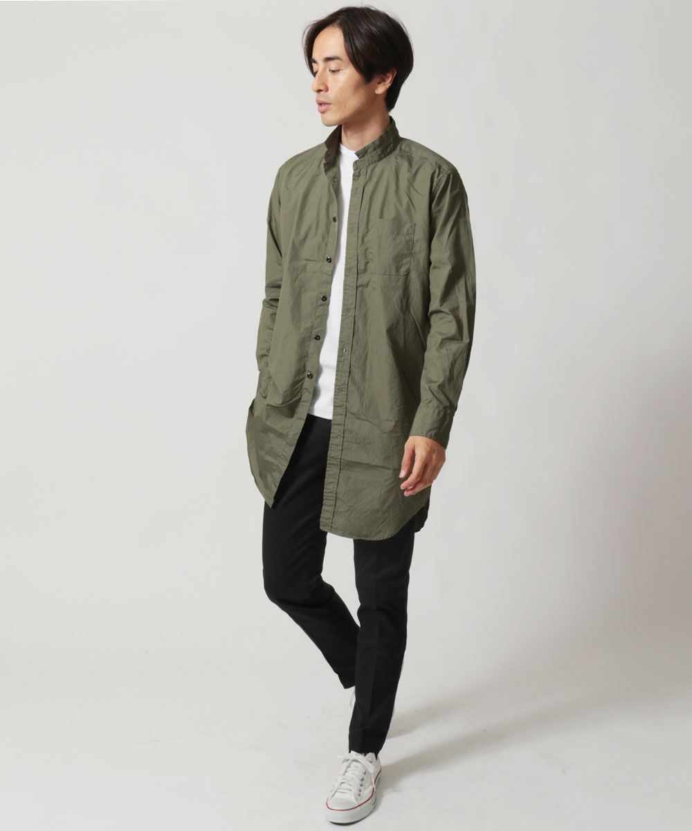 コートを着るには早いけれど、少し肌寒い季節にさっと羽織れる便利なシャツコートです。ボタンを留めても前開きで着てもOK。自然に立ち上がる小ぶりな襟が首元のアクセントになりおしゃれです。薄手ですがゆとりのあるサイズ感ですので、インナーにカットソーを合わせれば、寒い時期にも対応します。春先から冬まで、ロングシーズン楽しむことができるアイテムです。
