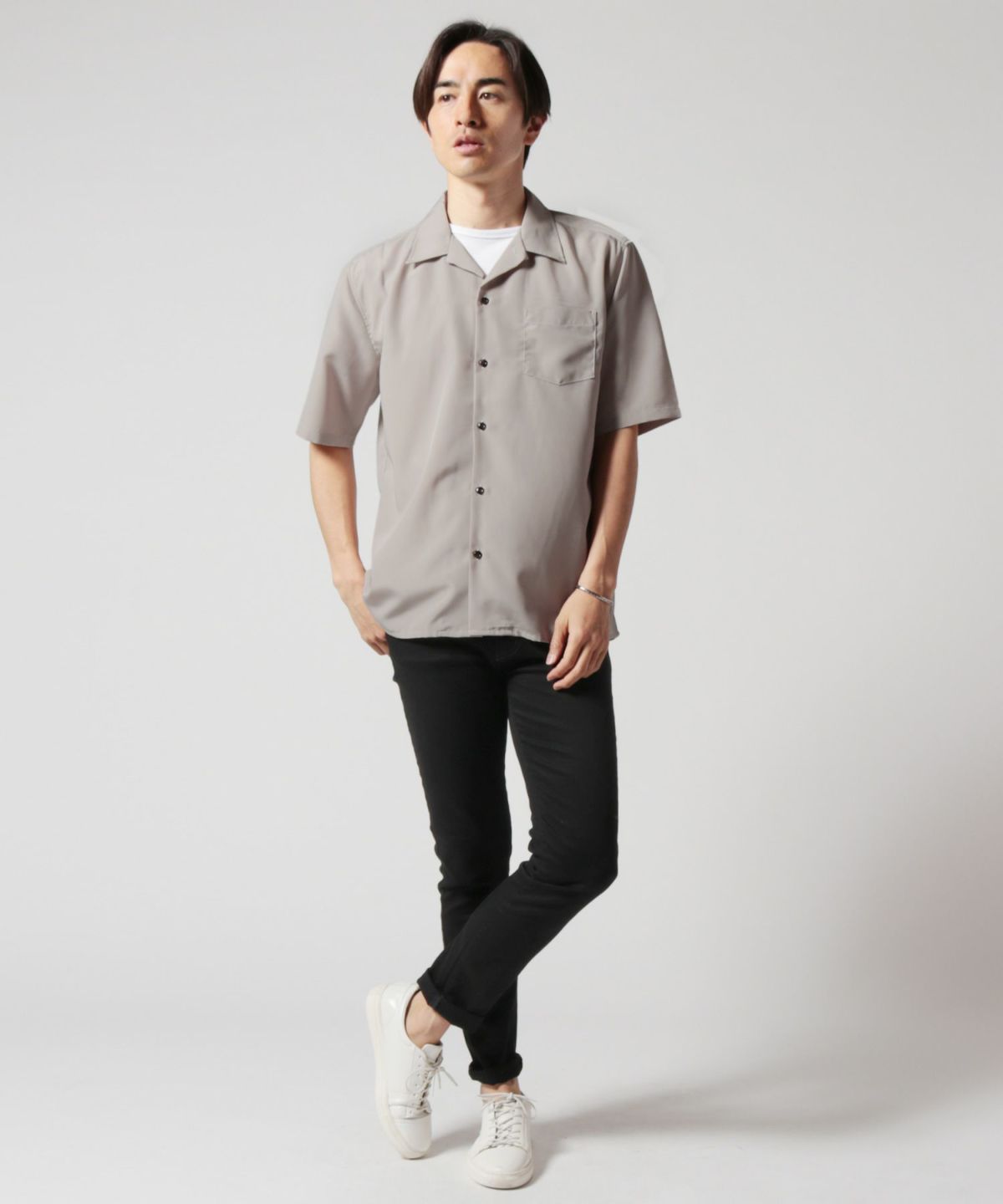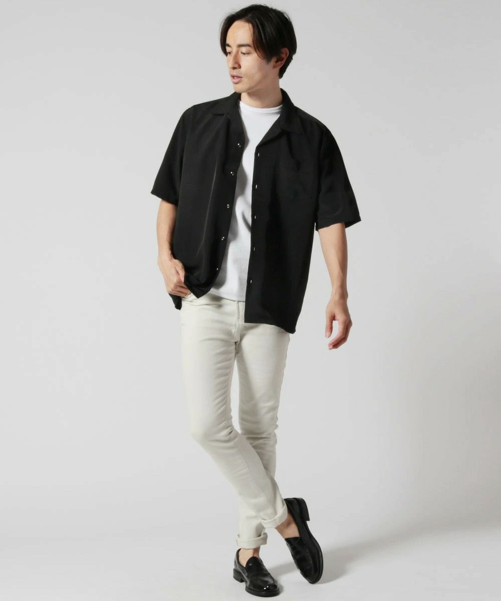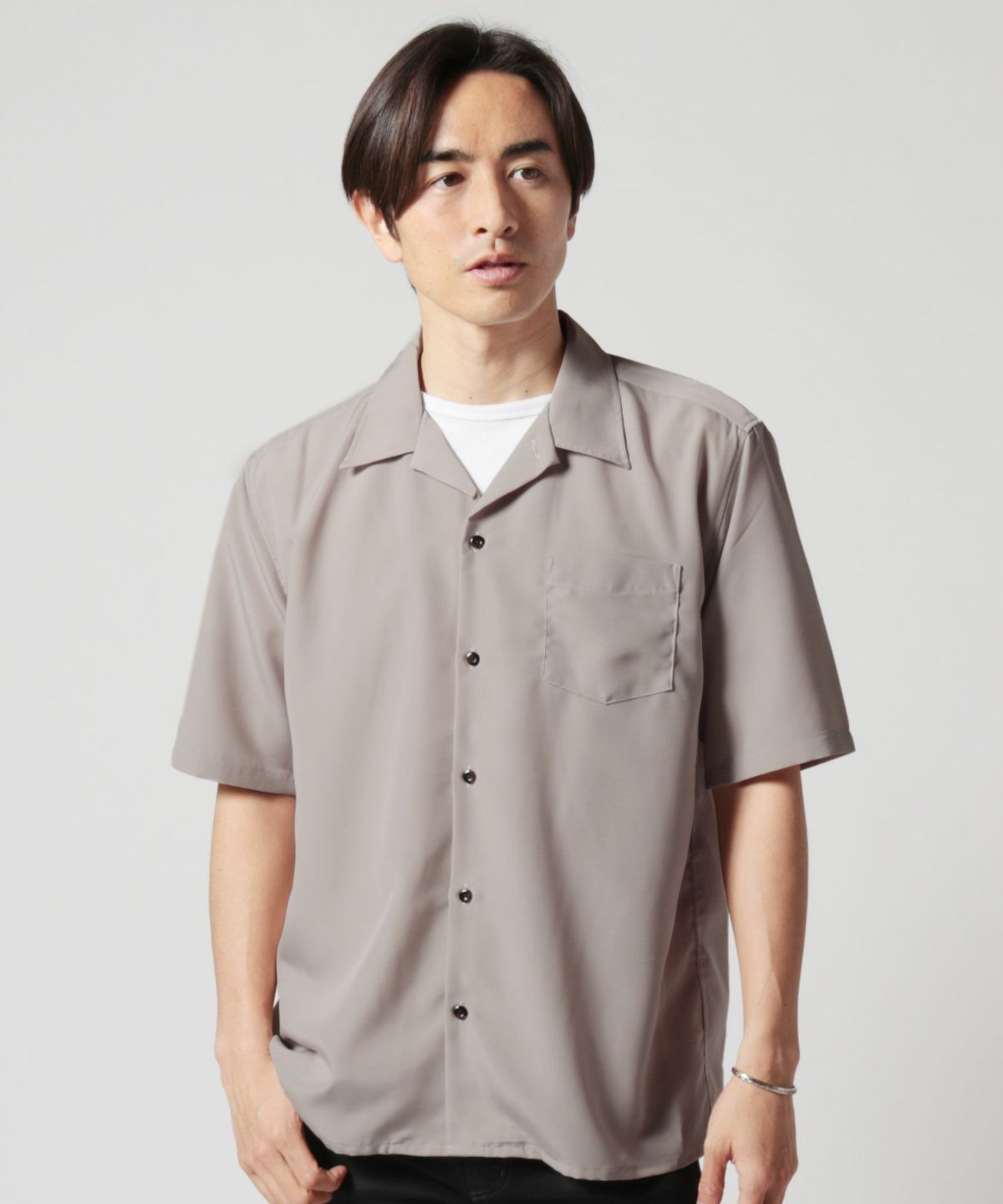 ●羽織るだけでも上品な印象を生むレーヨンライクなオープンカラーシャツ