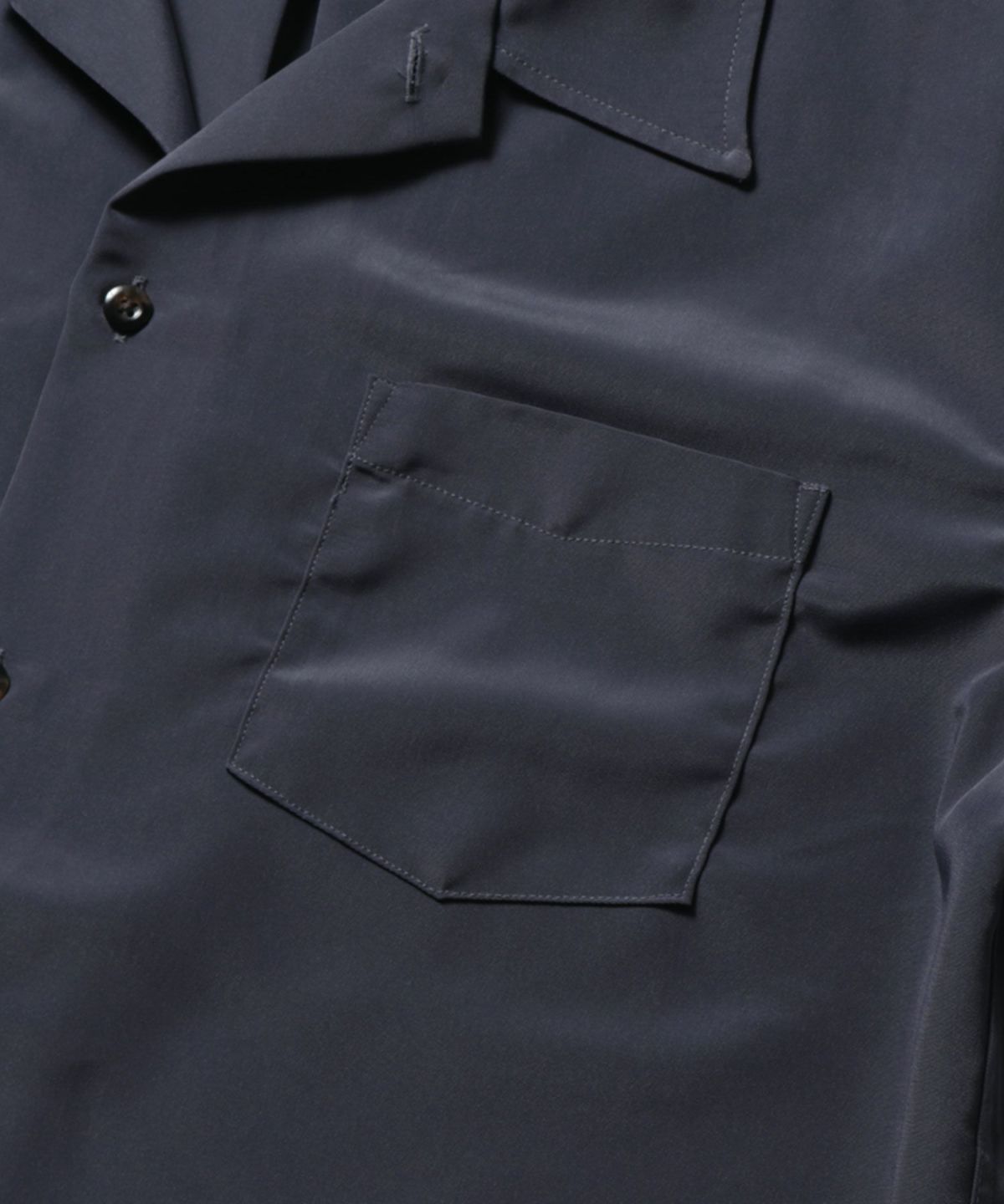 国内で丁寧に生産縫製されたオープンカラーシャツのご紹介です。生地にはポリエステル素材を使用しているため、洗濯耐性に優れ、シワや毛玉を軽減できるイージーケアアイテムになっています。レーヨンのような滑らかさと光沢感のある生地で、ドレープ性のある一着。着用するだけで上品な印象を与えてくれます。また、胸囲と肩幅にゆとりを持たせたサイジングで、トレンド感のある着こなしもお楽しみいただけます。