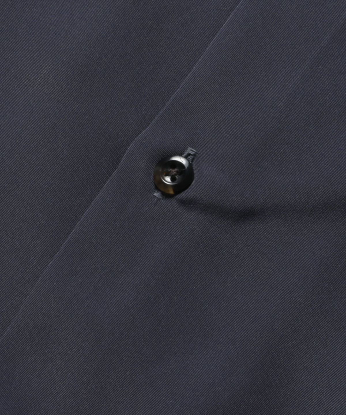 まるでレーヨンのような光沢感と滑らかさをもったポリエステル生地を使用。洗濯耐性に優れており、シワや毛玉ができにくいイージーケアアイテムとなっています。ドレープ性のある生地ですが、厚みも程よくあり、しっかりとした生地感です。