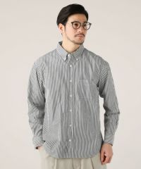 日本製ストライプボタンダウンブロード長袖シャツ