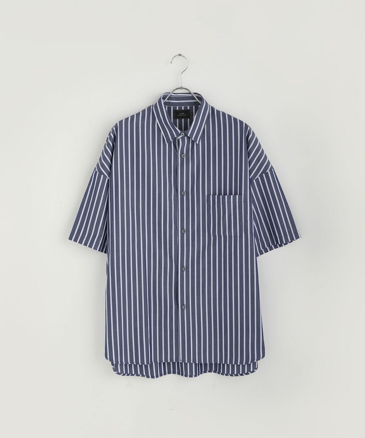 目の細かい高級感のある高密度のストライプ生地の素材感を生かすように削ぎ落とされたミニマルなデザインの半袖シャツ。 肩を落としたドロップショルダーデザインで、こなれ感たっぷりの雰囲気を作り出します。 丈夫になるよう脇の縫い目は折伏せ縫いに、さらに運針の細かなステッチを採用するなど、縫製にもこだわったアイテムです。
