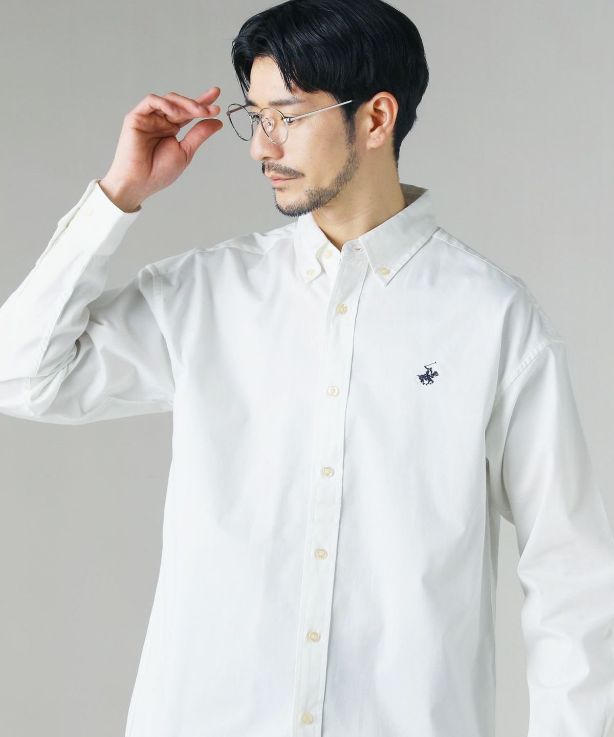 ツイルピーチワンポイント刺繍ボタンダウンシャツ