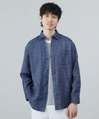 麻100%のナチュラルな風合いが魅力のレギュラーカラーシャツです。