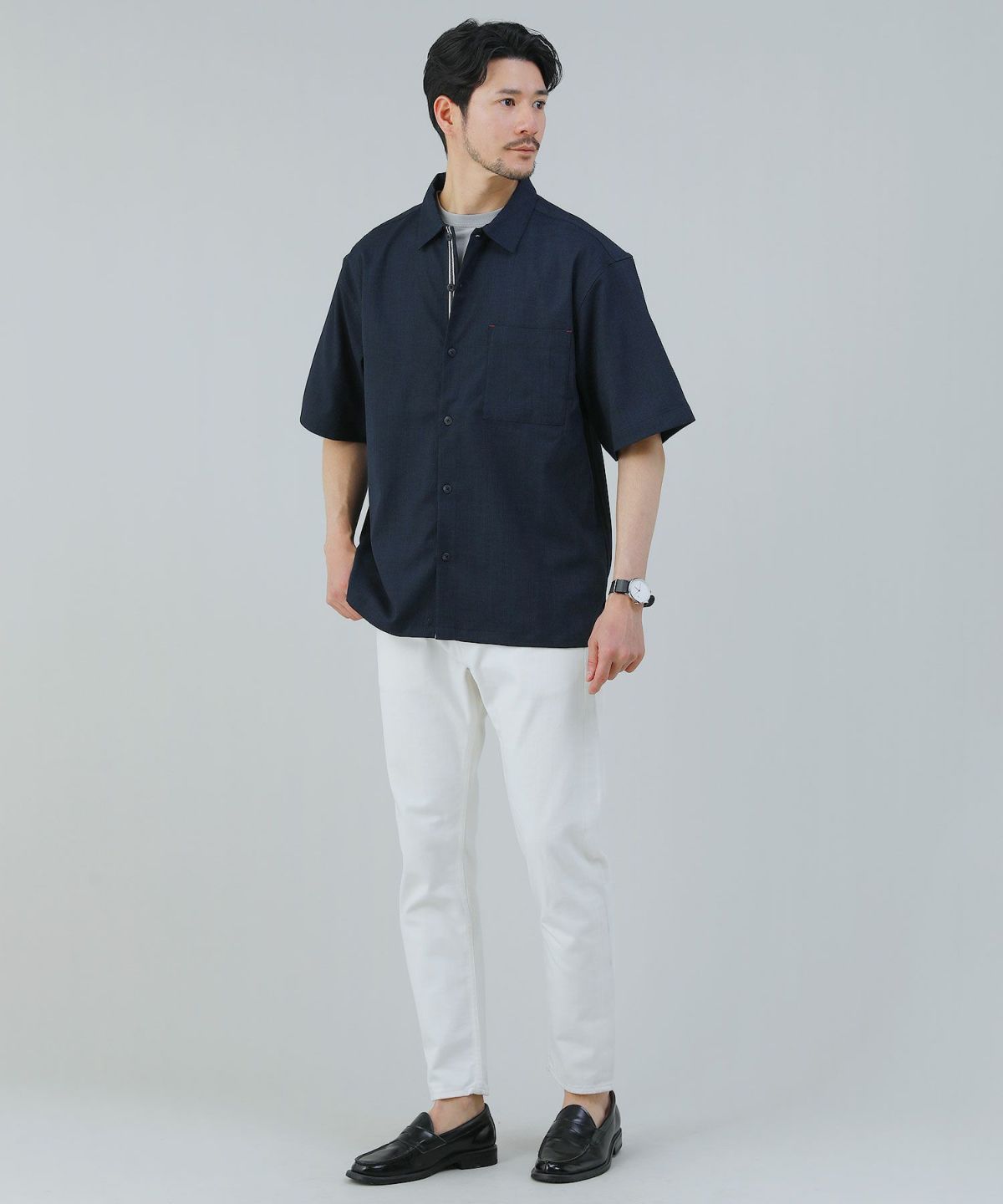デイリーからキレイめまで活躍するレギュラーカラーのカジュアルシャツで、汗ばむ盛夏でも涼しくサッパリとした着心地が続きます。