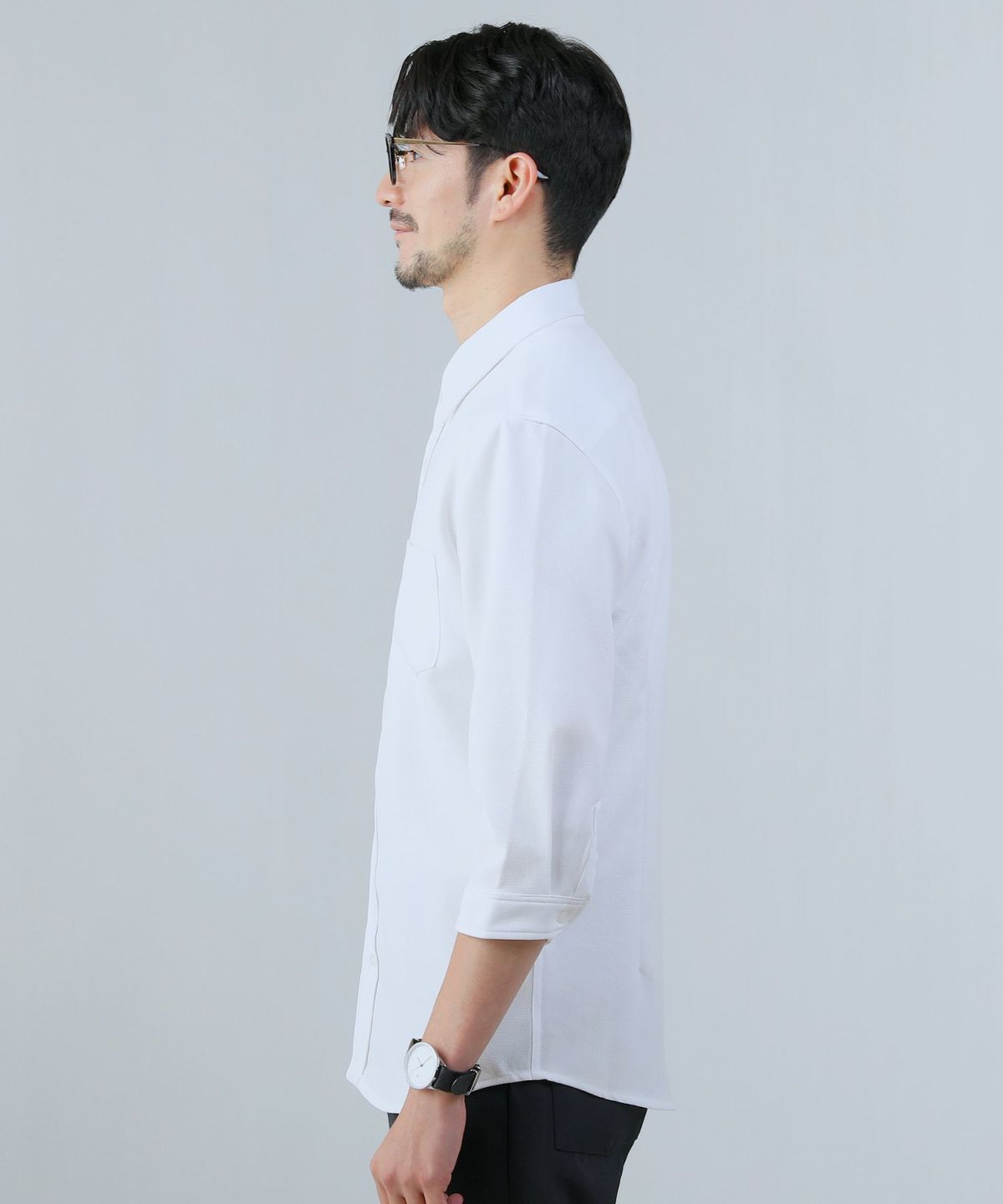 細身の美シルエットでキレイめコーデがかっこよく決まる、涼しく爽やかな着心地の一着。パナマ生地の風合いによって季節感も演出されます。そのまま一枚で着るだけでなく、エアコンなどによる室内外の温度差が大きいときの羽織りとしてもおすすめ。春夏シーズンに活躍すること間違いなしのキレイめシャツです。