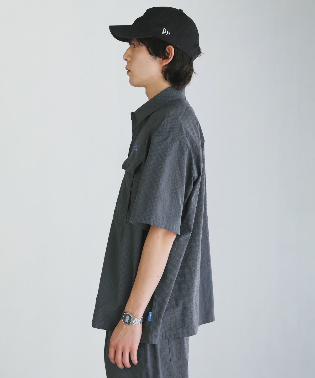 シアサッカーダブルポケット半袖シャツ