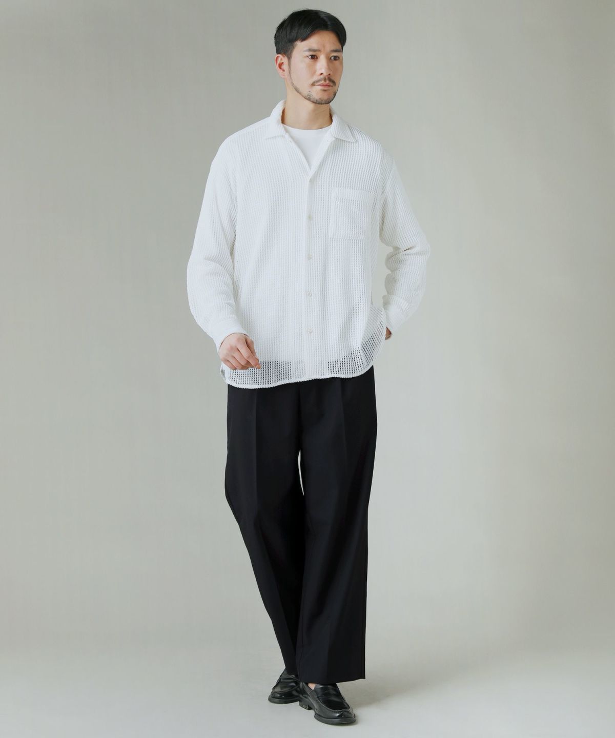 ゆったりとしたシルエットとドロップショルダー、前後差のある着丈がリラックス感溢れる一着。透け感たっぷりに仕上がっているため、フロントを締めたスタンダードな着こなしでも簡単にレイヤードスタイルを楽しむことができます。また、羽織りとして着用すれば一気に抜け感のあるコーデに仕上がり、一枚二役で様々なコーデに使えるアイテムです。