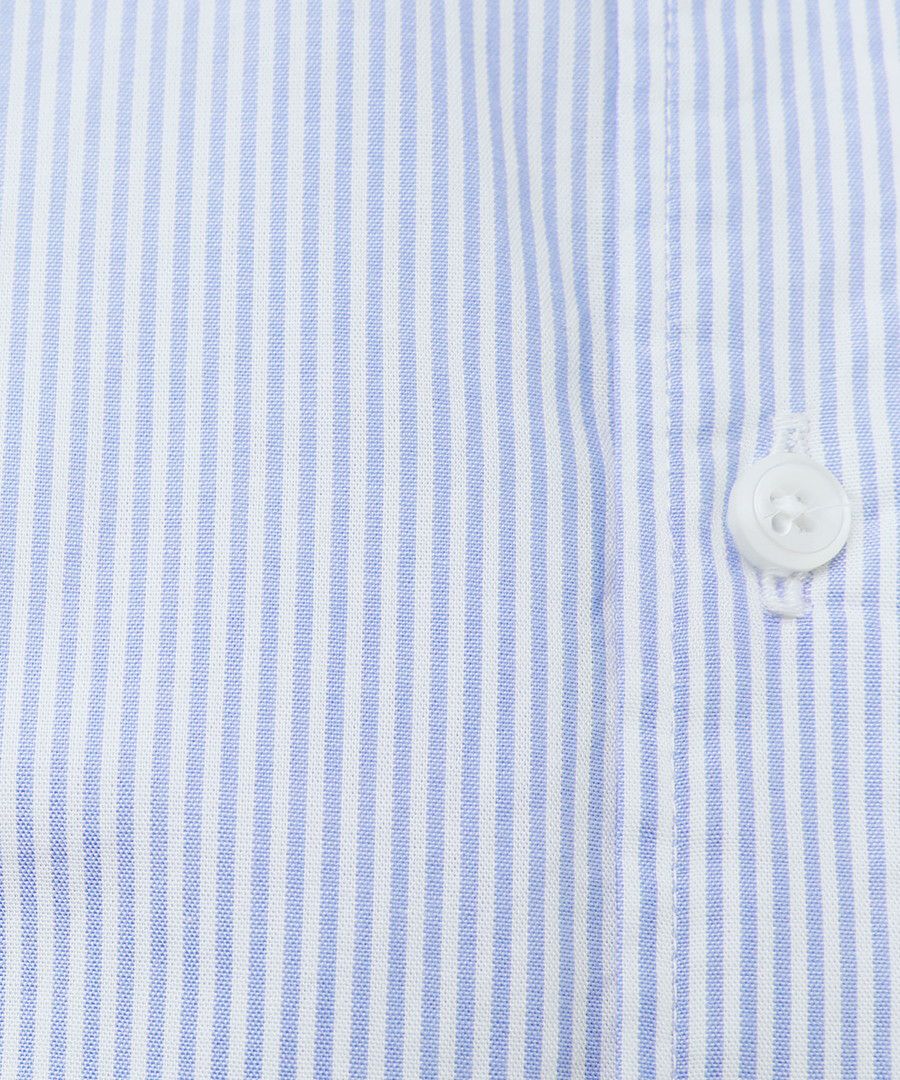 身幅に少しだけゆとりをもたせて袖丈もやや長めに設定したことで、一般的なシャツよりも窮屈感をなくし、さらに裾に向かって細くなるテーパードシルエットも取り入れてすっきりとした絶妙なシルエットを実現しました。襟のデザインは、ノーネクタイで着てもキレイな襟立ちに仕上がる『ボタンダウンカラー』に。前を締めた状態でも開けた状態でも、きちんとした清潔感のあるコーディネートに仕上がります。