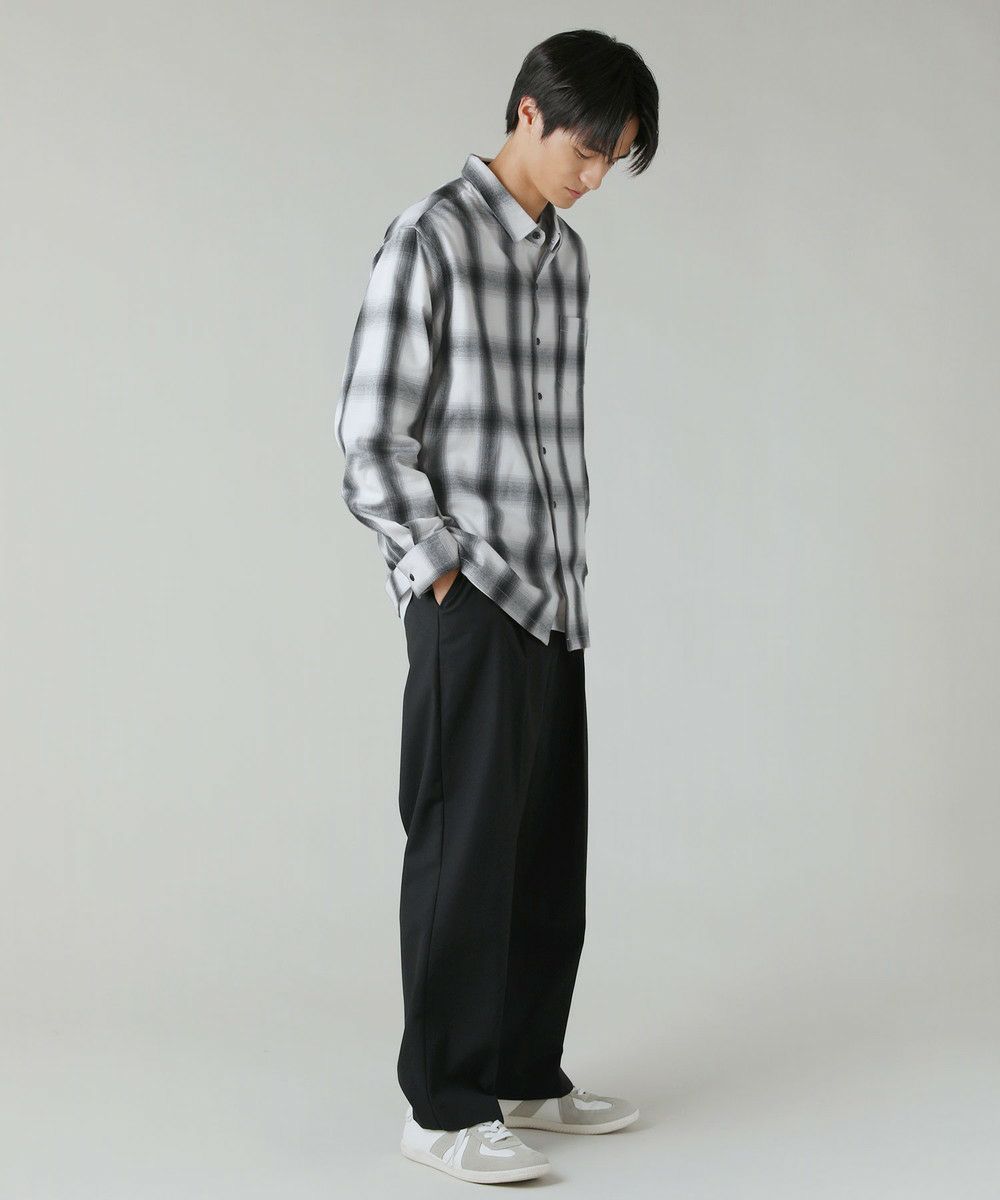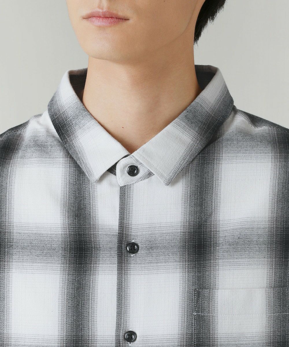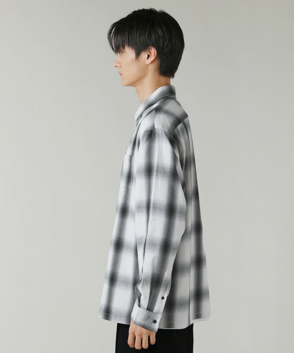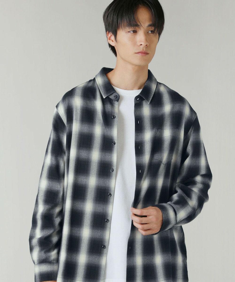 リラクシングシルエットオンブレチェックレギュラーカラー長袖ネルシャツ