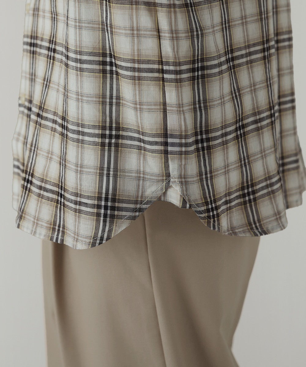 オンブレチェックワンナップカラー長袖シャツ