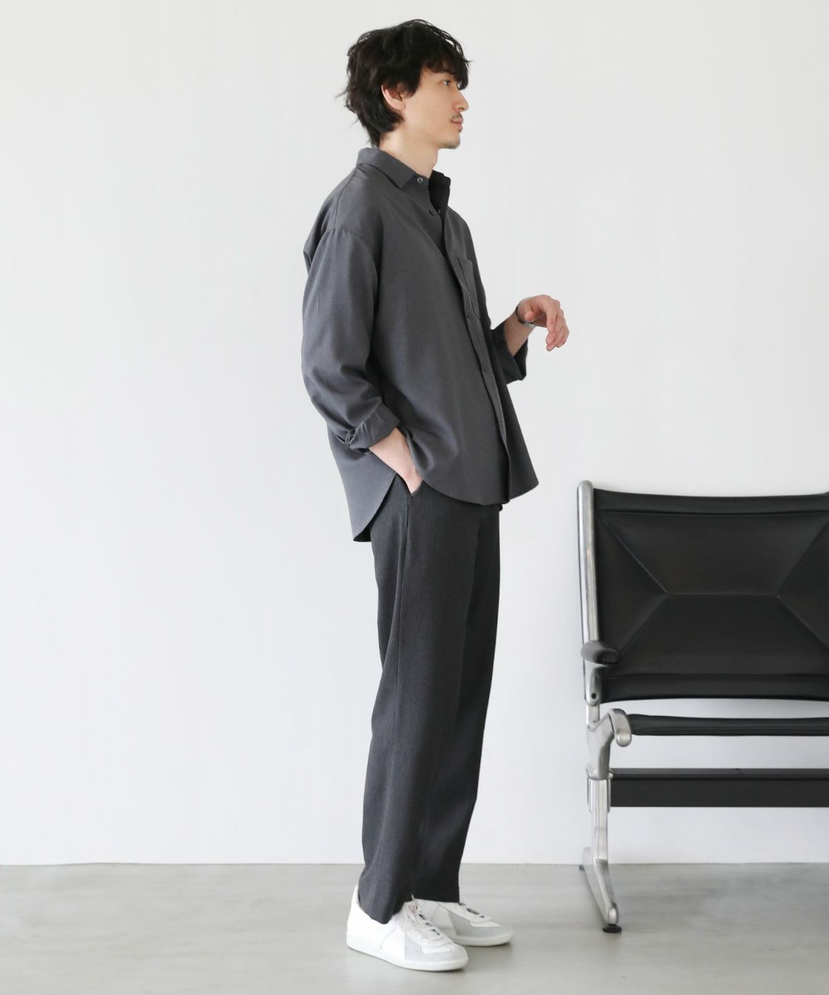 窮屈感がなく、インナーにカットソーを入れてもごわつかない、着心地の良さが考えられたゆったりシルエットに設計しました。だらしない印象にならないよう、あくまで着心地が悪くならない程度のゆとりを持たせ、大人がキレイめに着やすいルーズさにとどめております。キレイめな印象を損なうことなく着心地の良さも実現させる、程よいルーズシルエットです。