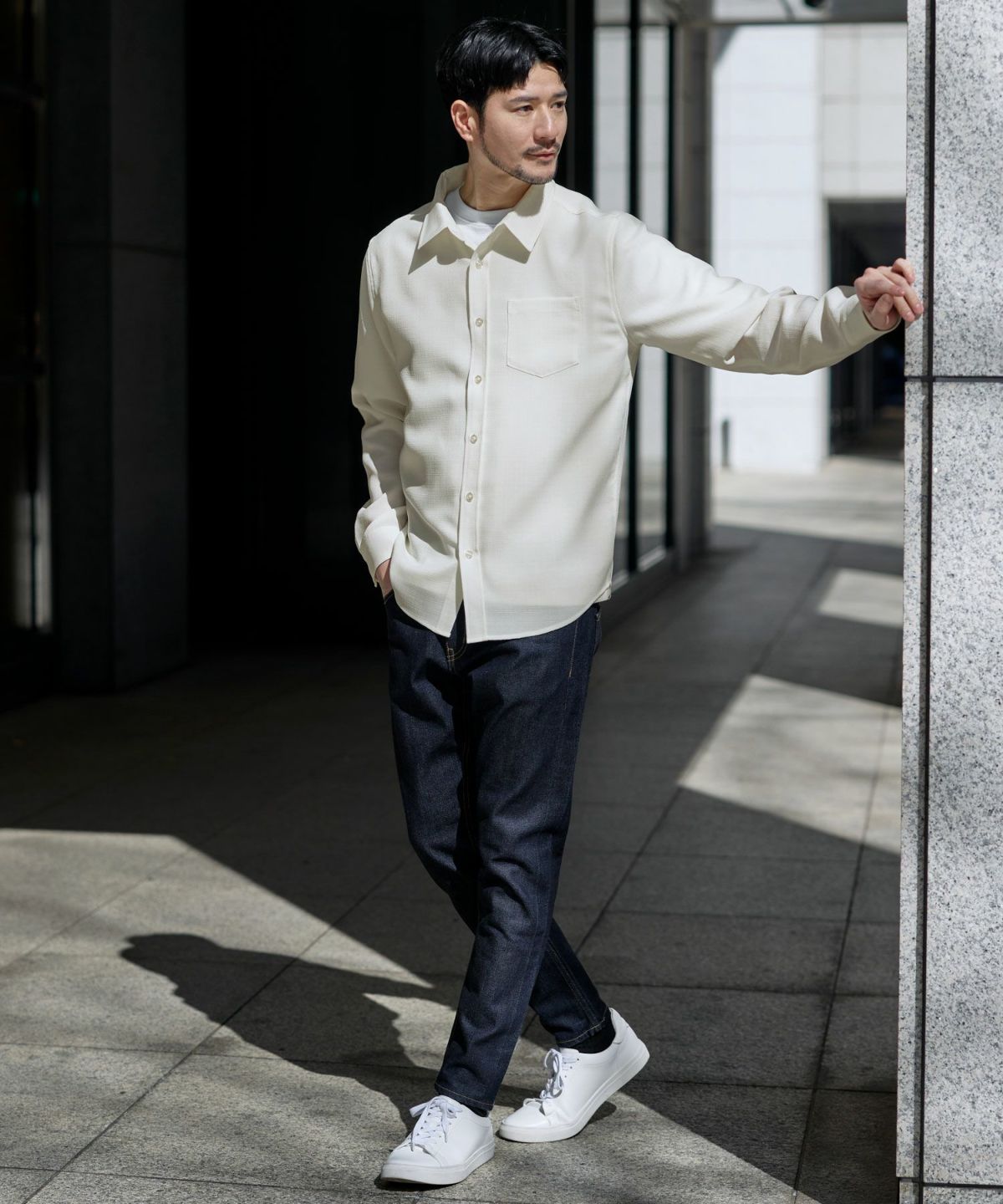 吸水速乾・通気性だけでなく、イージーケア性にも優れた生地となっております。シワになりにくい生地なので、ご家庭の洗濯機でお洗濯をした後もさっとシワを伸ばしてハンギングして乾かすだけで充分キレイに仕上がります。出がけにぱっとノーアイロンで羽織れるのも嬉しいポイント。速乾性に長けているためお洗濯後の乾きも早く、汗ばむ季節のデイリーユースにもってこいのシャツです。