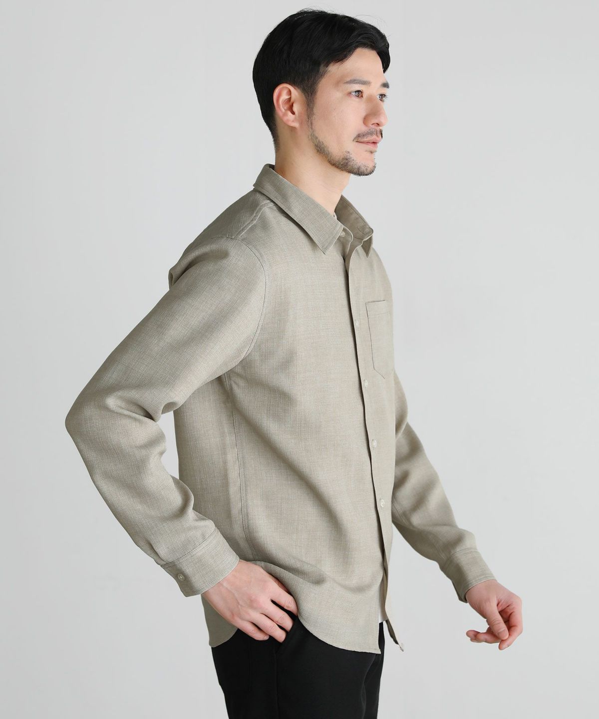 一枚で着てもかっこよく決まるよう計算されたセミワイド気味の細身シルエットです。窮屈感のない程よい細身シルエットに素朴な風合いの生地を掛け合わせることで、シャツらしいきちんと感を残しつつリラクシーな雰囲気も漂わせるお洒落な春夏向けシャツを完成させました。襟はキャンバス生地のラフさが活きるレギュラーカラーに。堅苦しさを感じさせないソフトな首回りとなっております。