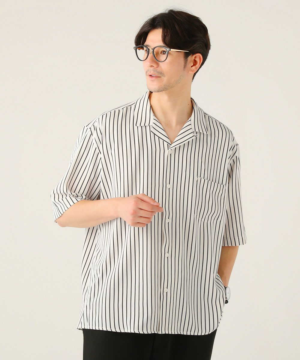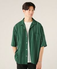 レトロプリント/ストライプ半袖オープンカラーシャツ
