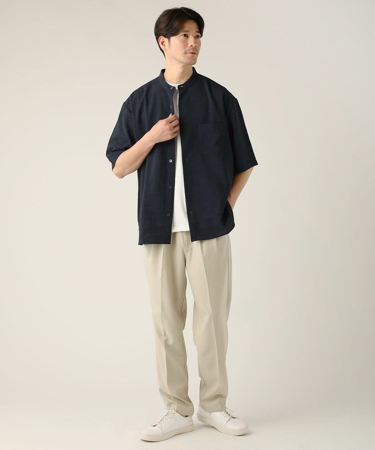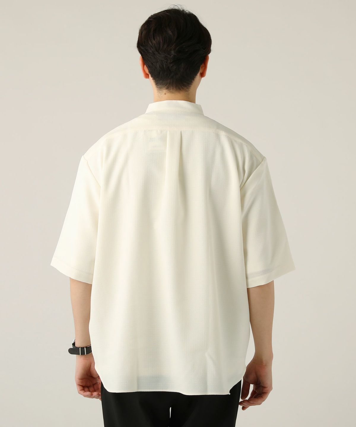 テックキャンバスバンドカラー半袖ボタンシャツ