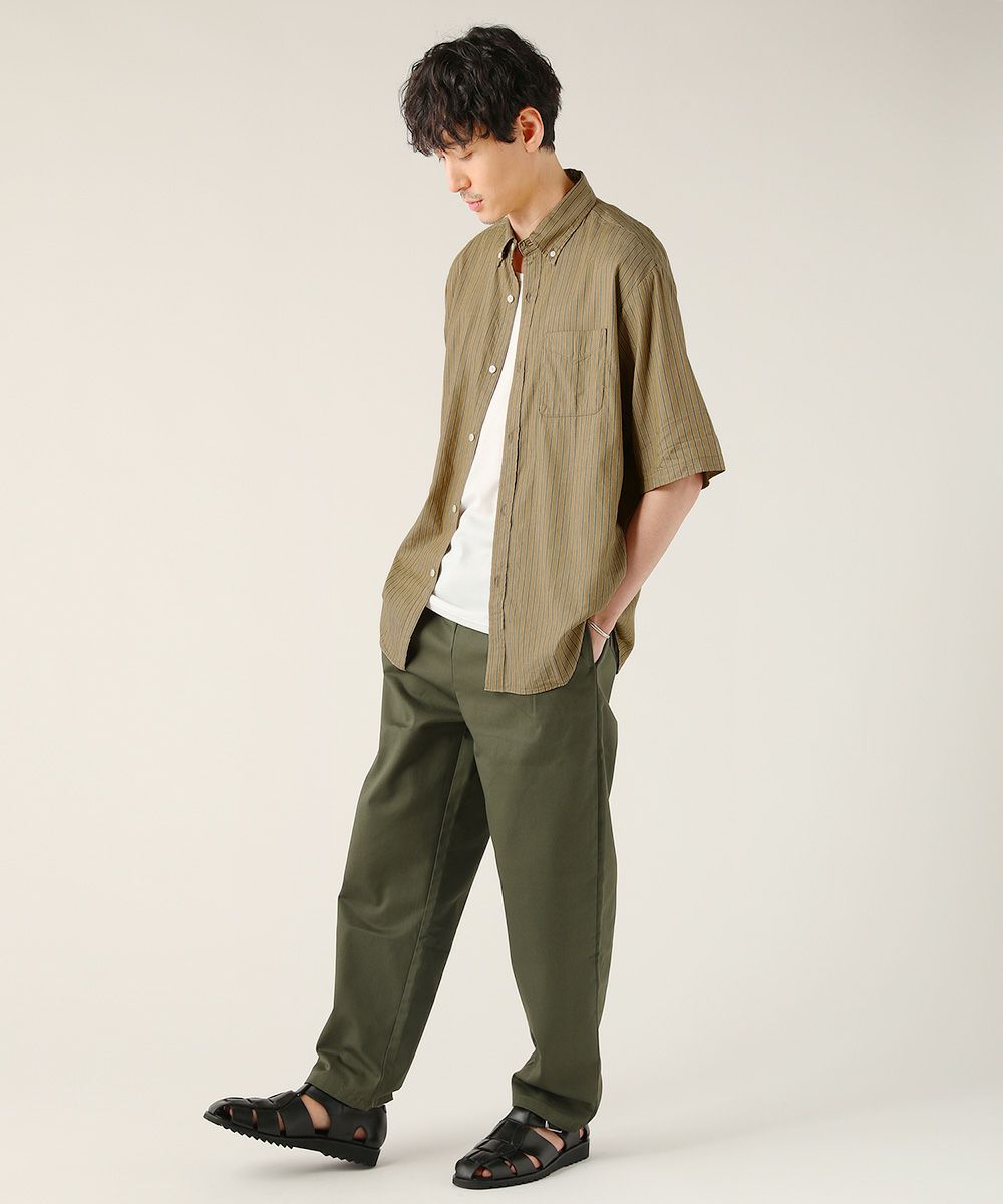 日本製ワンウォッシュボタンダウン半袖テーパードシャツ
