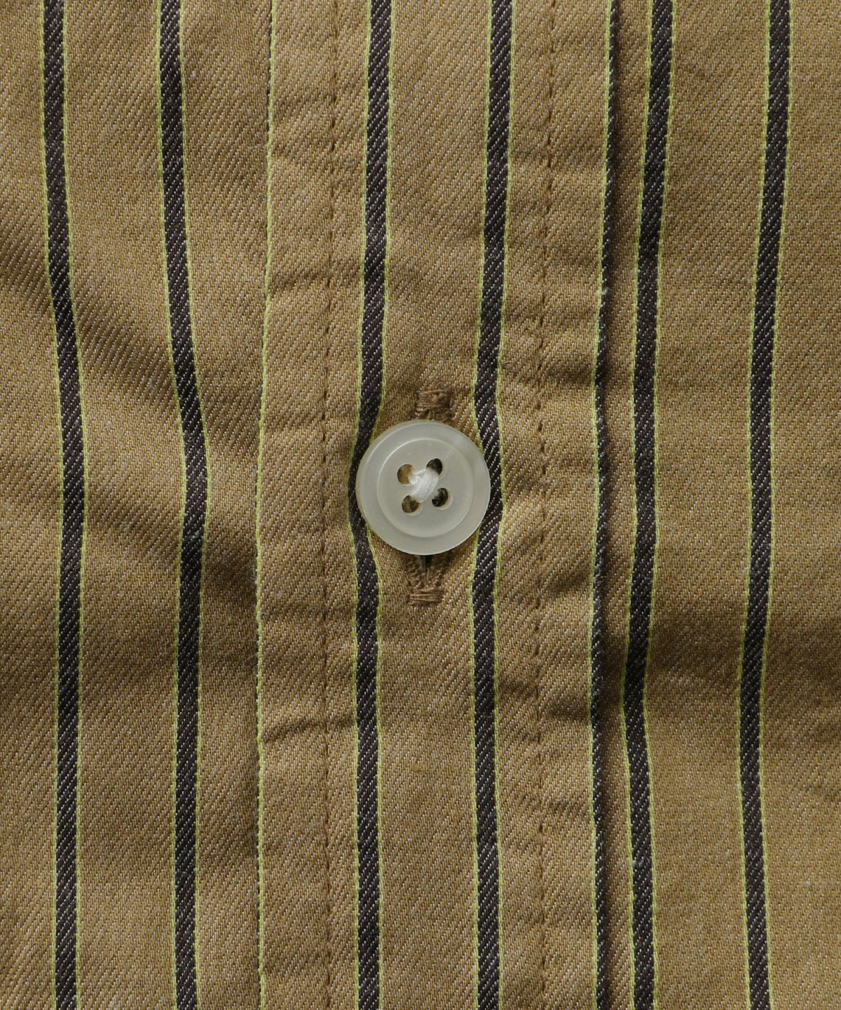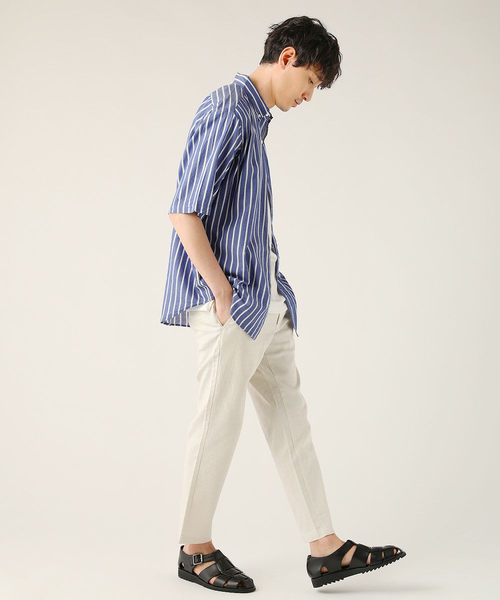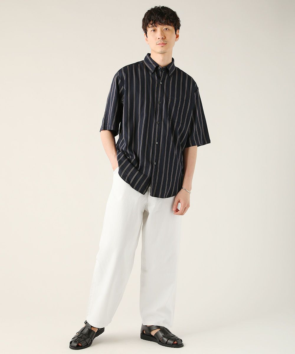 綿麻オーバーサイズレギュラーカラーストライプ半袖シャツ