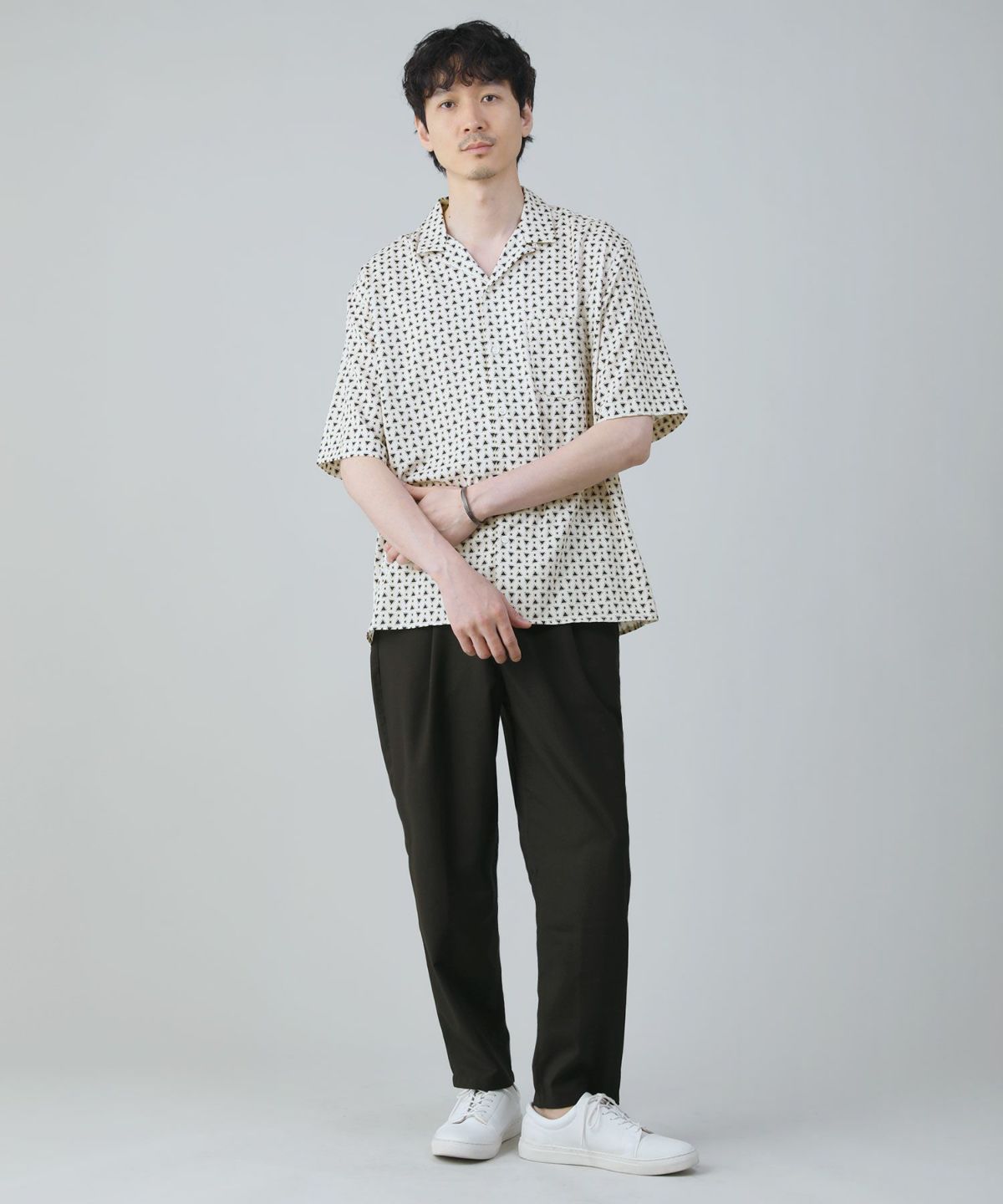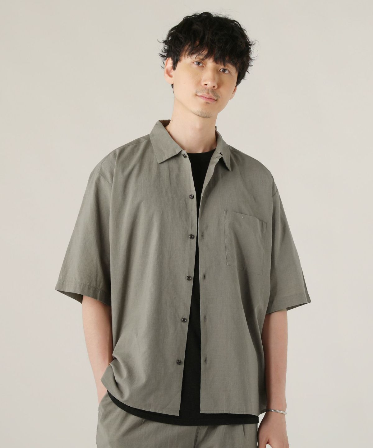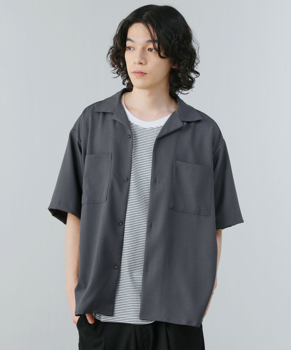 テックキャンバスドオーバーサイズオープンカラーシャツ半袖