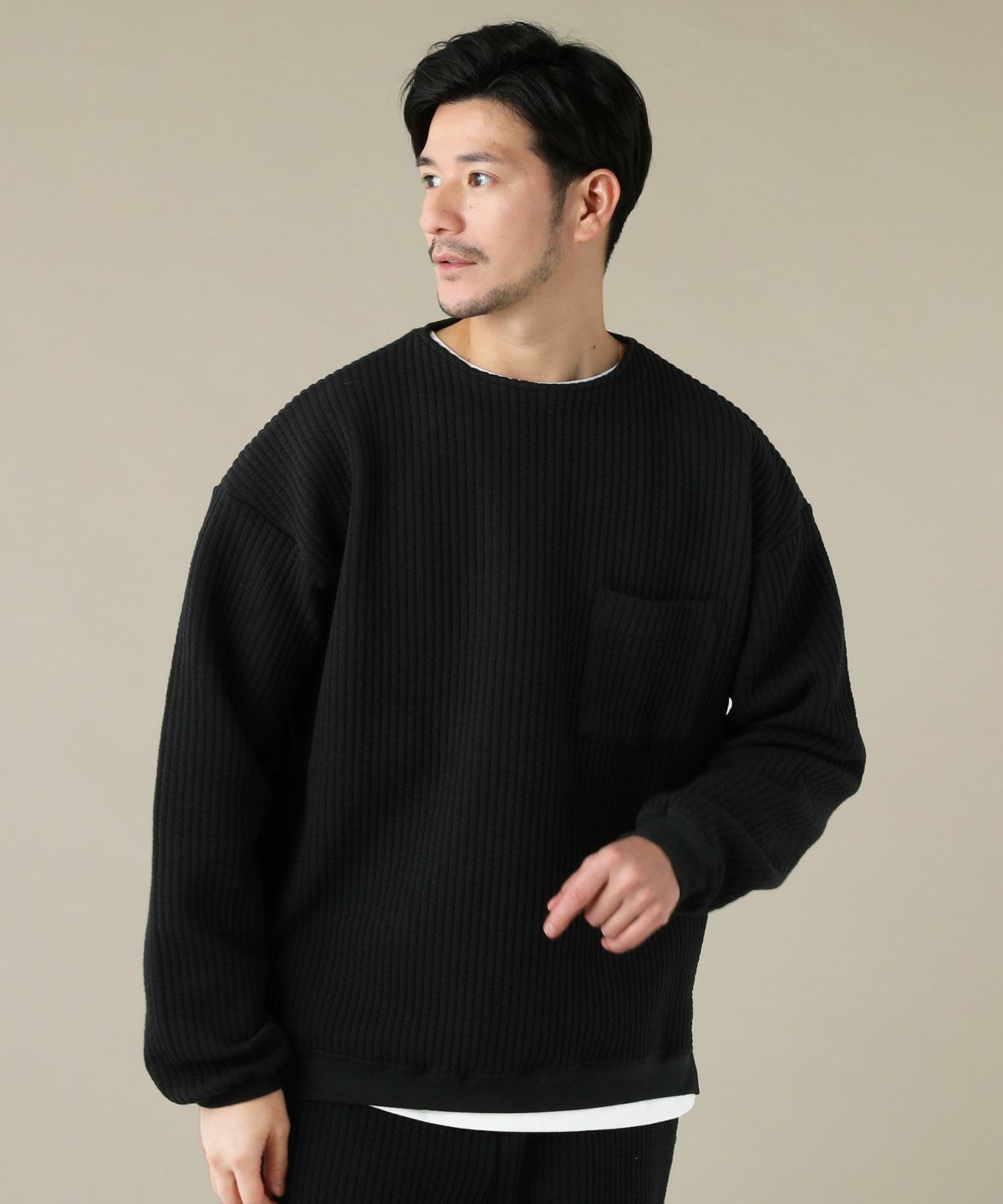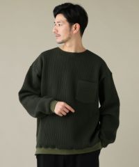 日本製尾州コットンキルト胸ポケ付きクルーネックプルオーバー