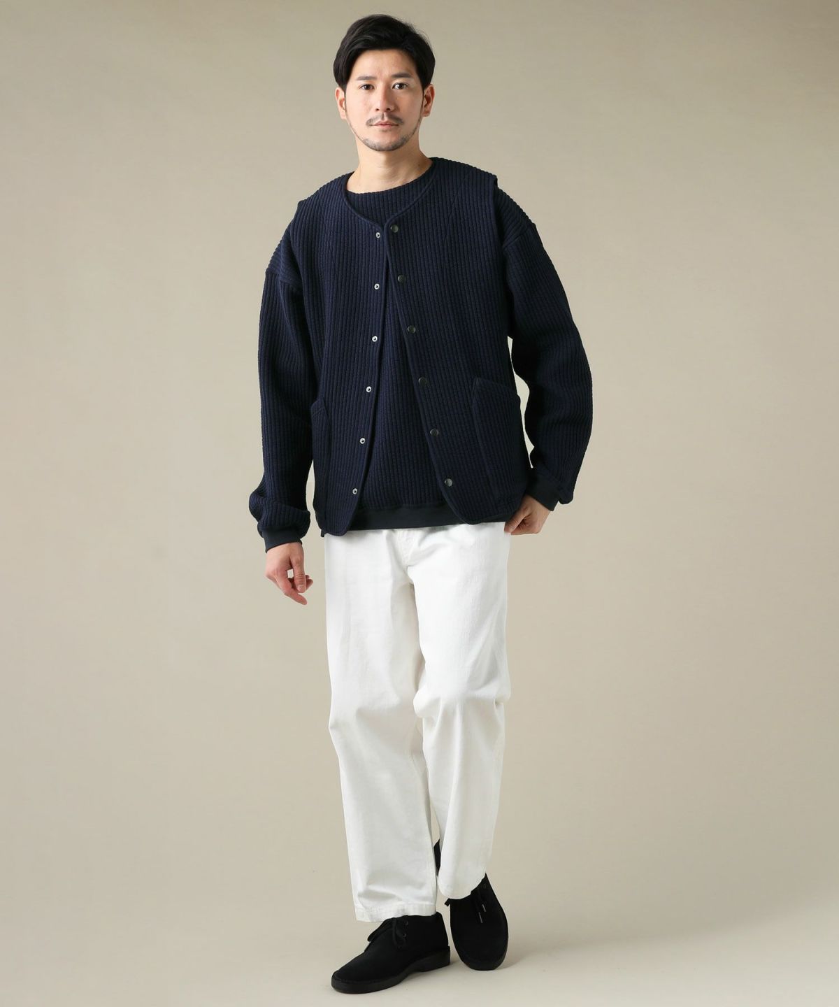 日本製「尾州」コットンキルトクルーネック プルオーバー